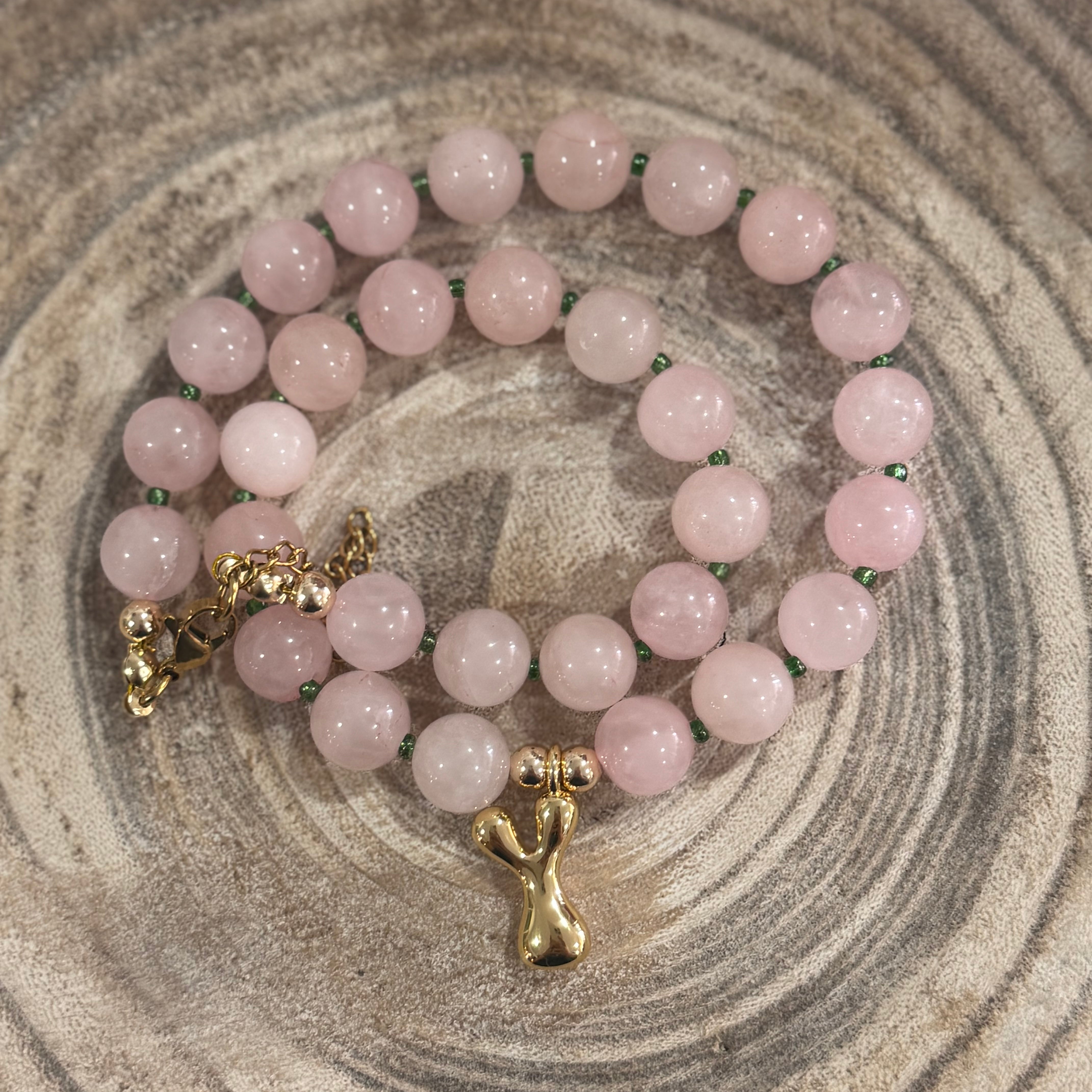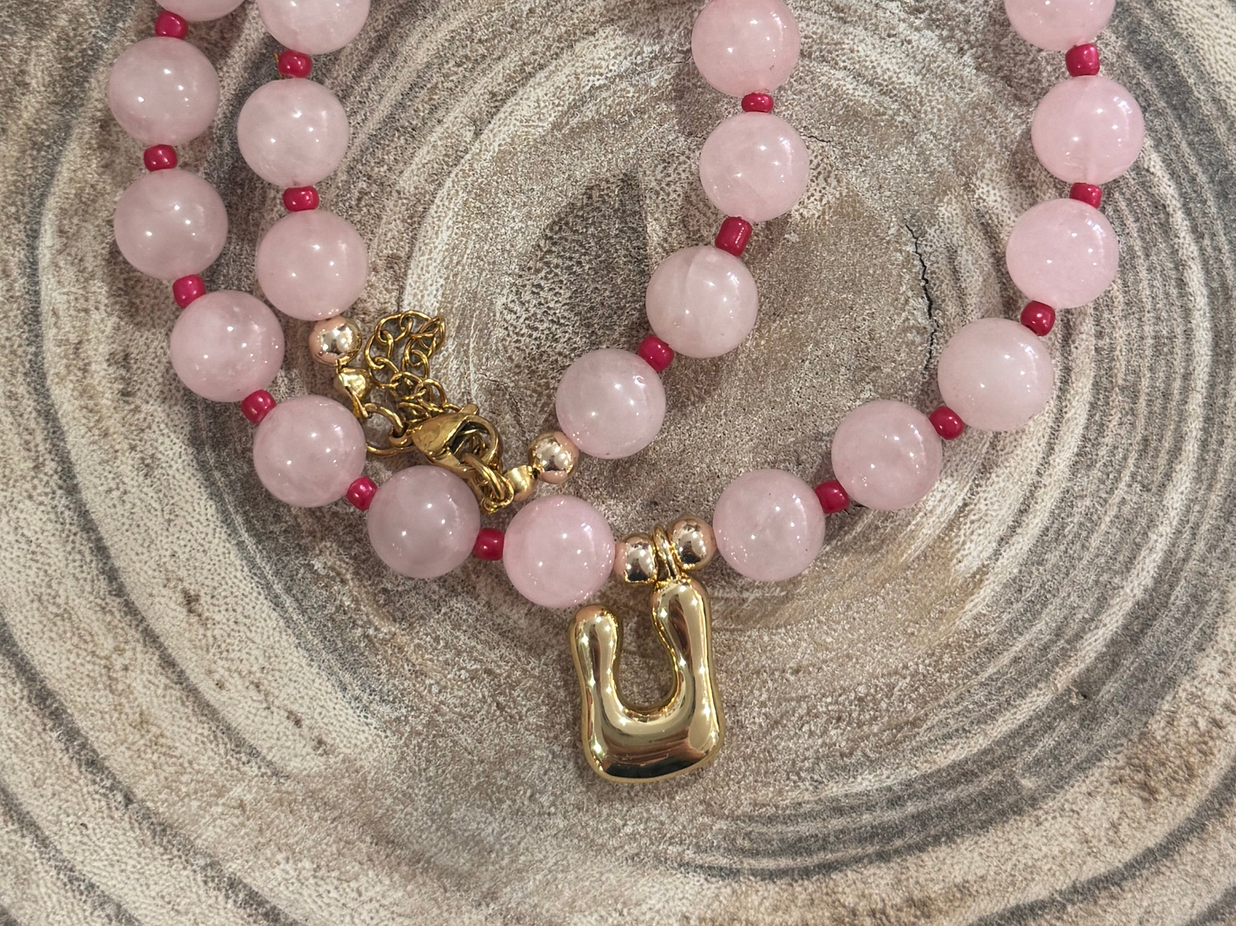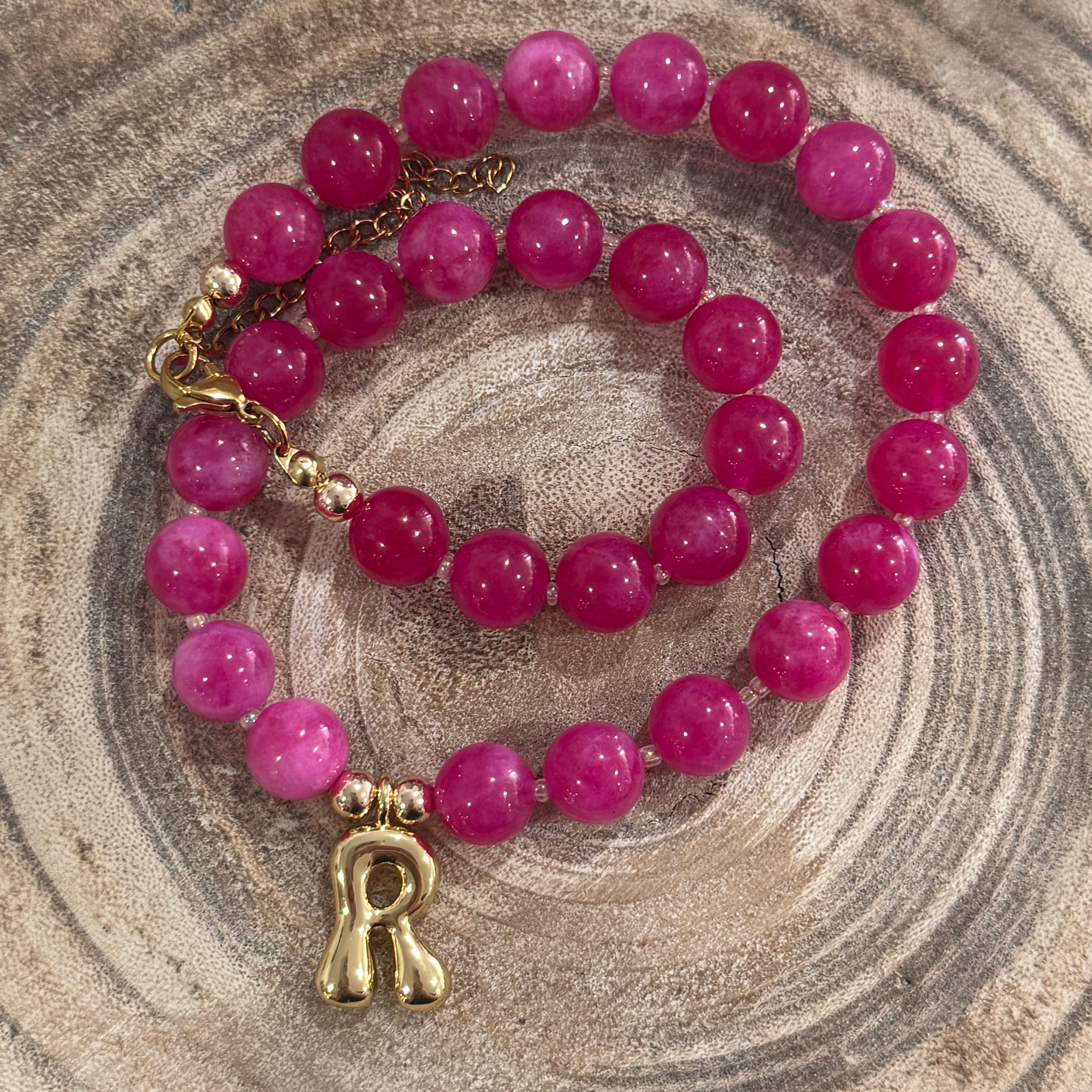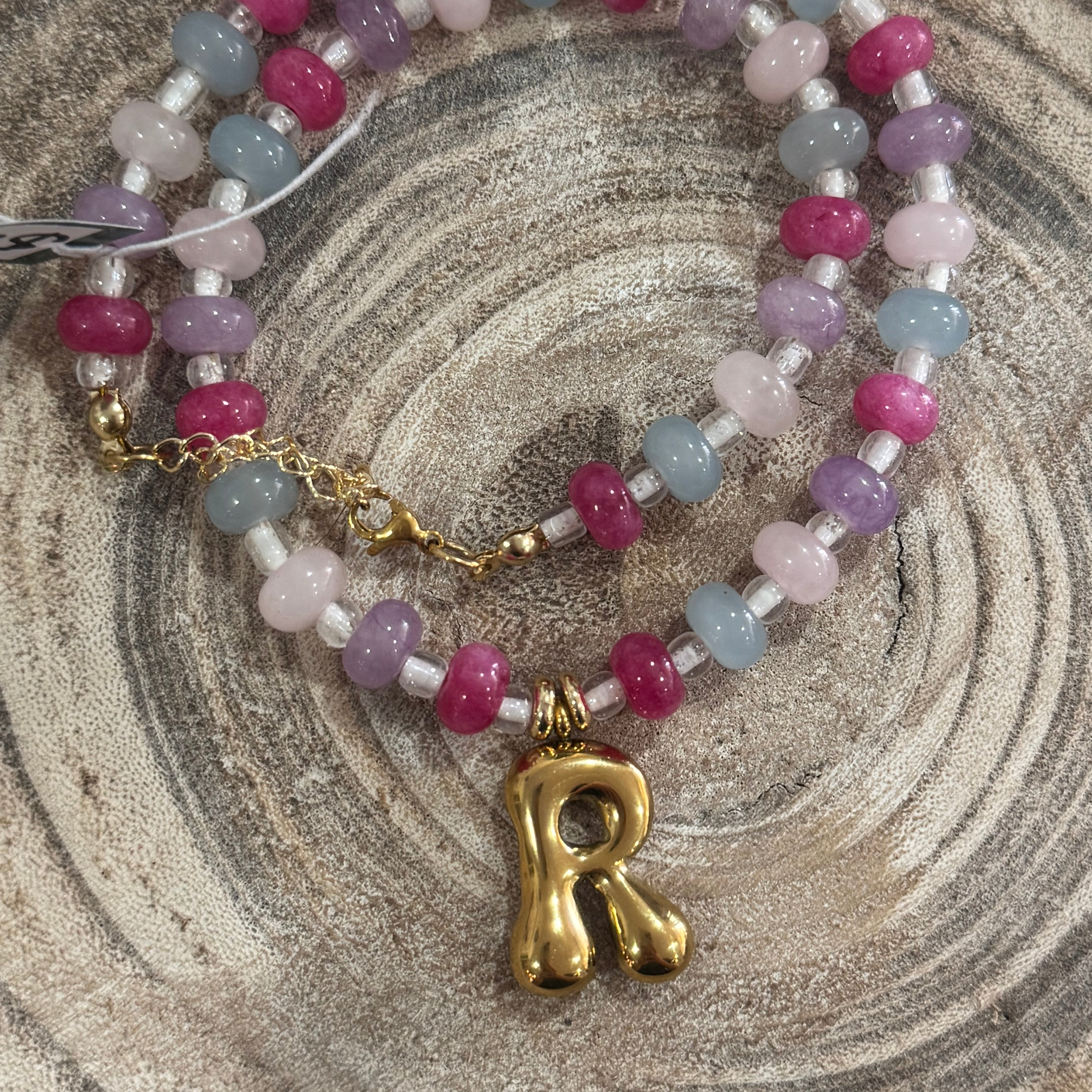 Beaded Pink R Necklace