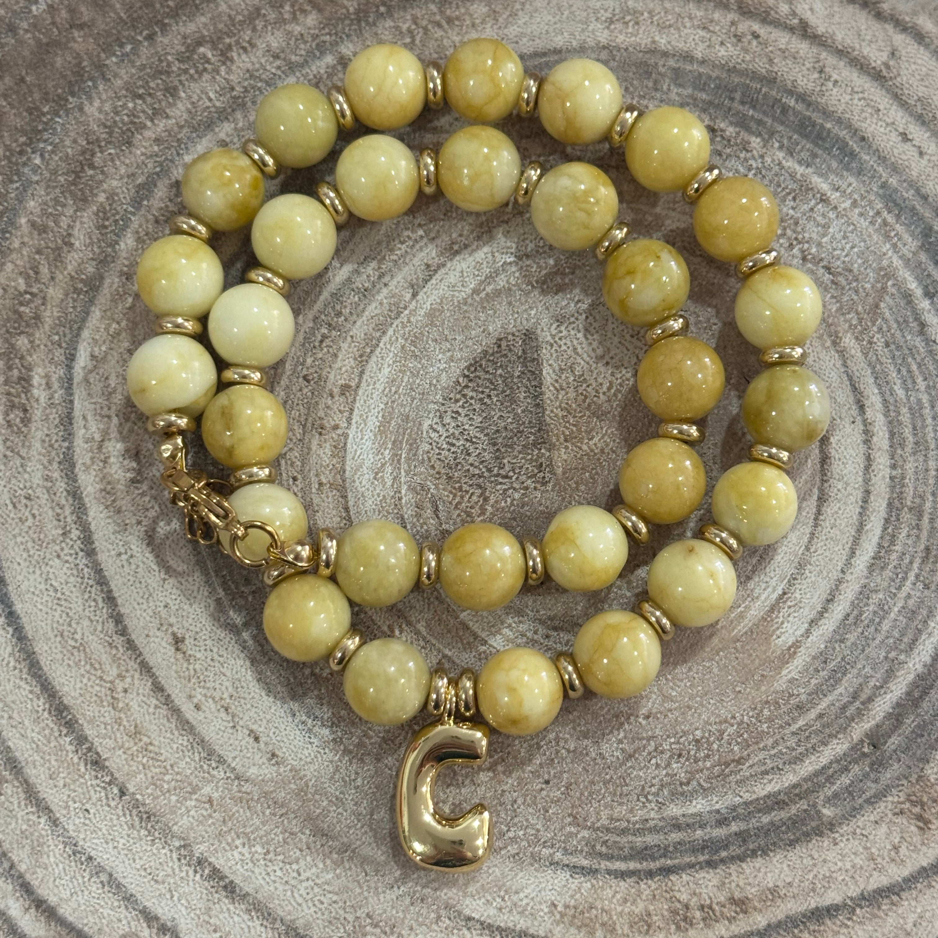Beaded Yellow C Necklace