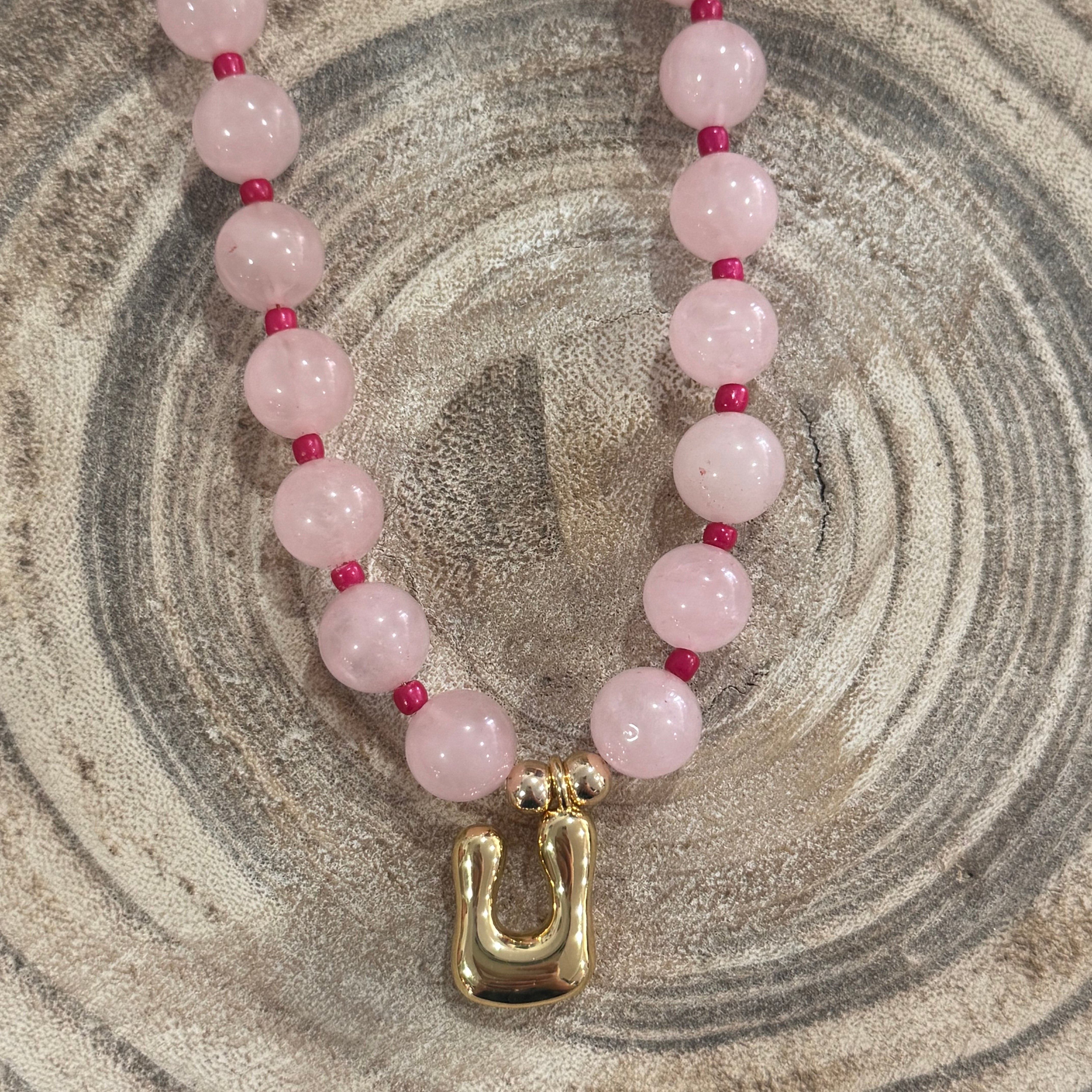 Beaded Pink U Necklace