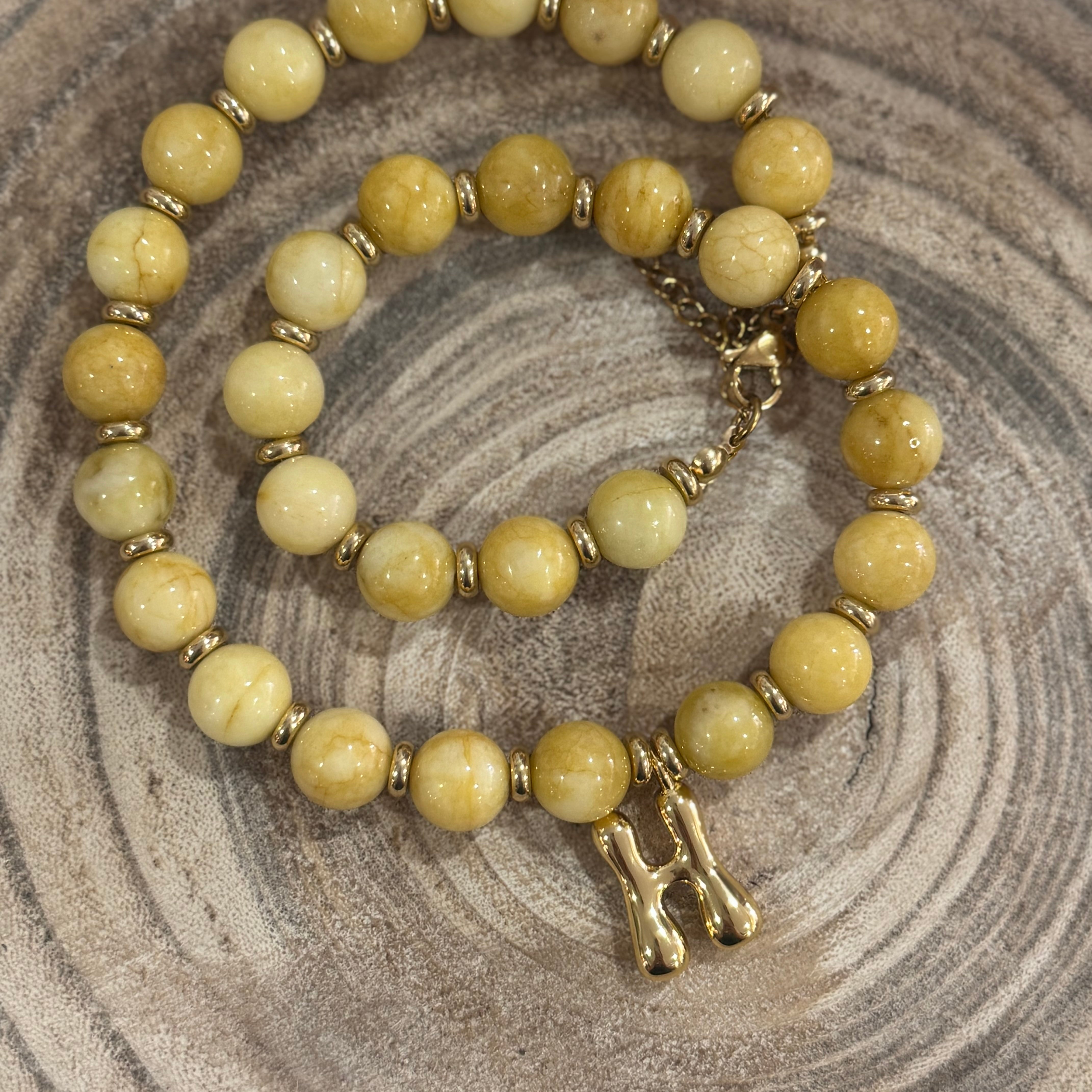 Beaded Yellow H Necklace