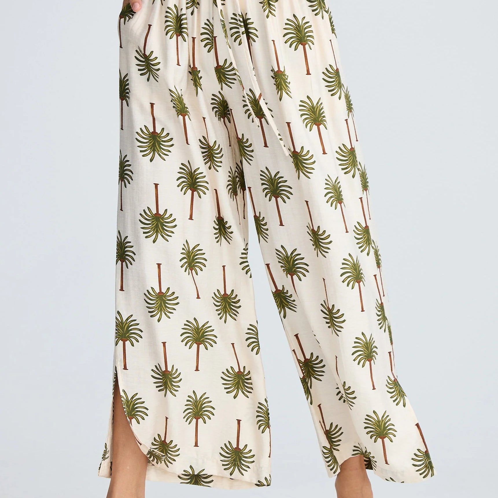Fly Away Pant - Ivory Palm Print