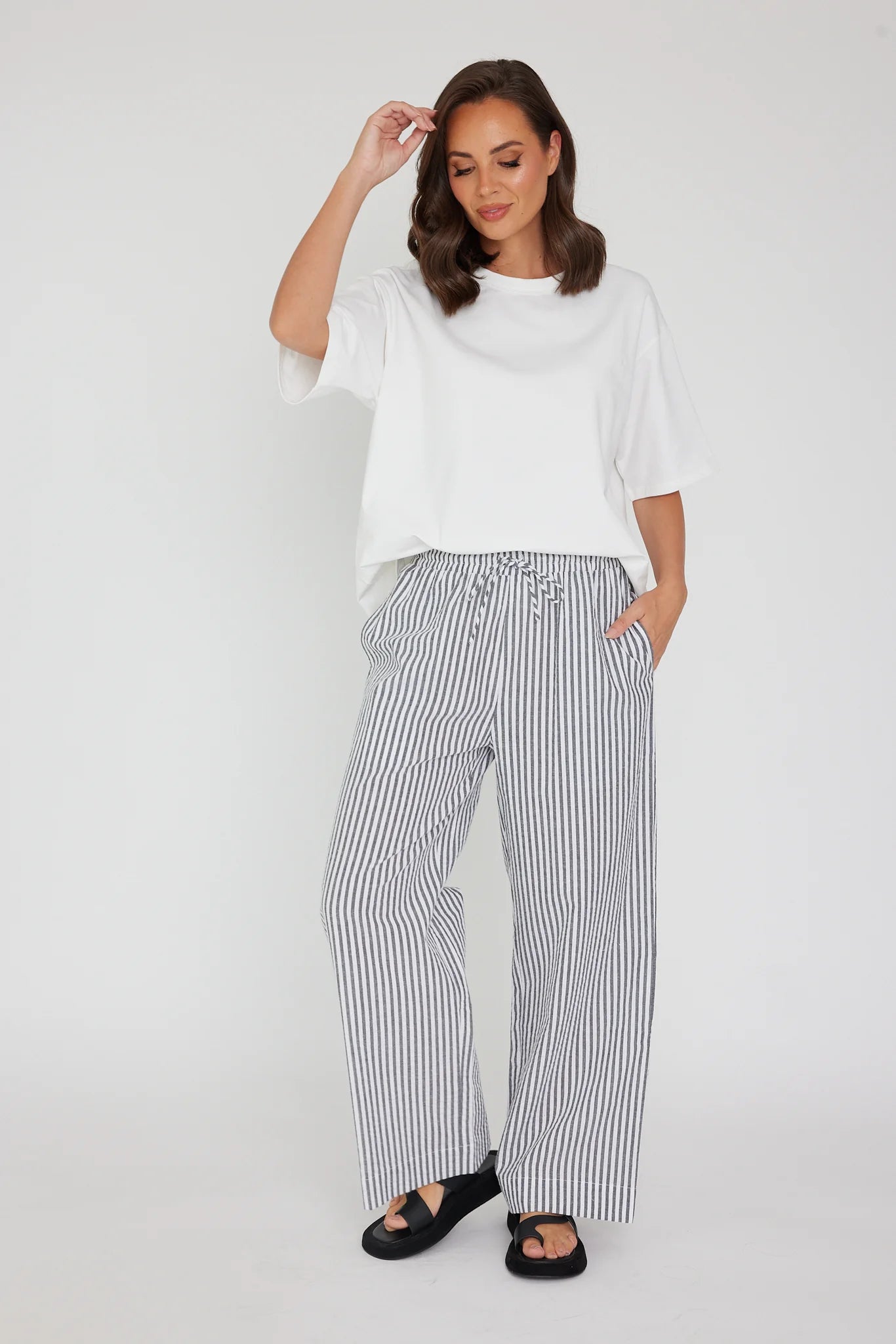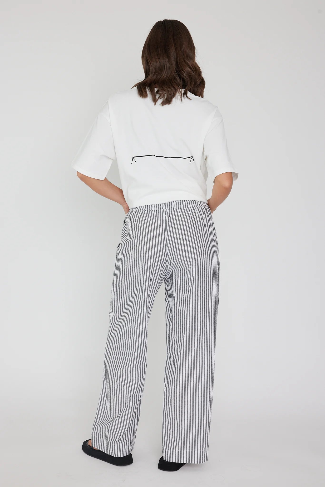 If you're looking for a laidback, cool pair of striped trousers for women, then the DENIS pants in Black Stripe could be for you. The pants' relaxed fit paired with a drawstring waist guarantees a comfy fit, while a seersucker stripe pattern adds that oomph to your look.