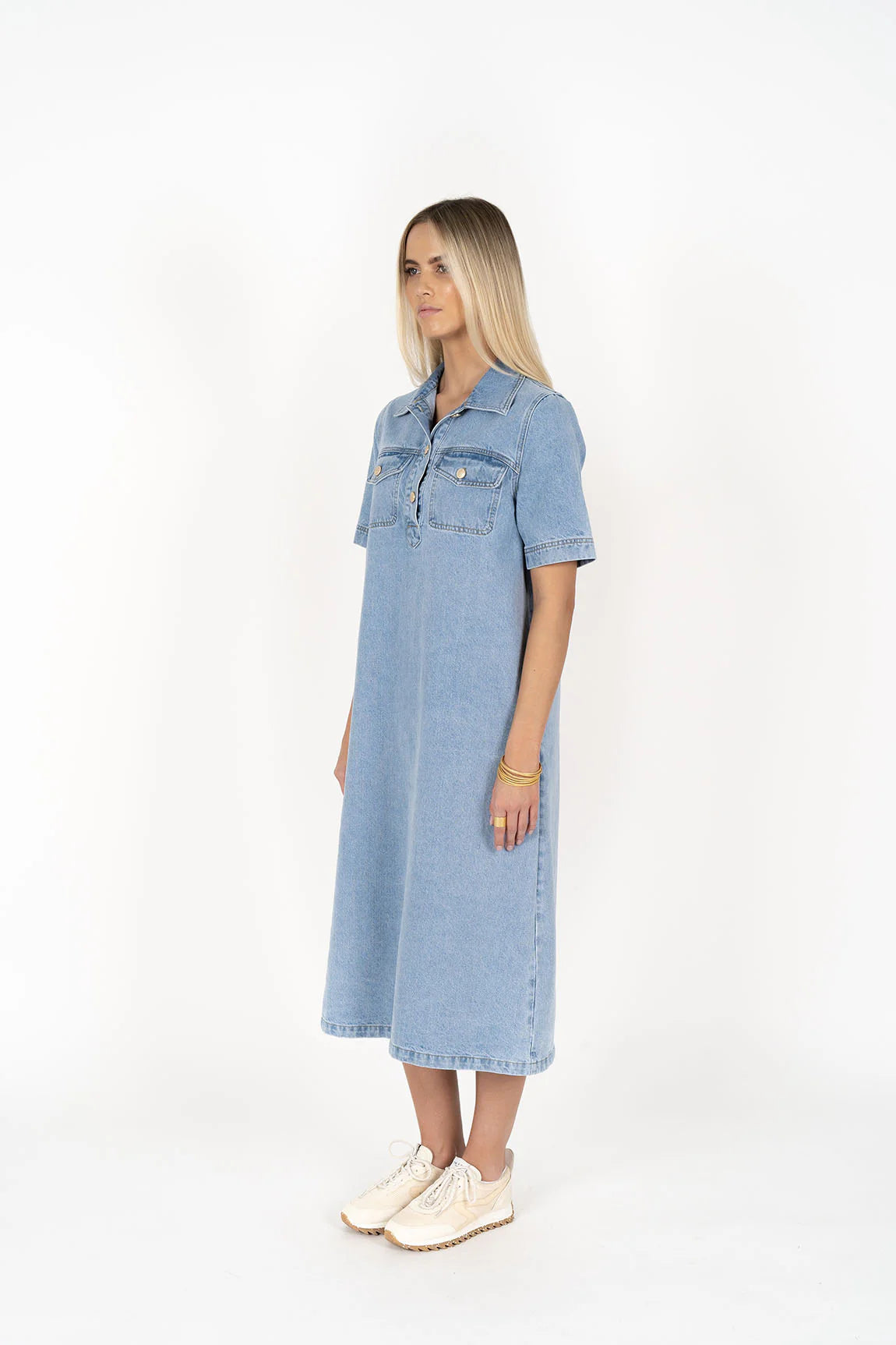Our Amici dress is the perfect blend of comfort and chic and will be this winter’s most sought-after denim dress. Crafted from mid-weight denim – a perfect trans-seasonal piece that you will wear and wear. Team with your favourite sneakers for a casual vibe in the earlier part of the season and then layer her up with a skivvy, boots and scarf in the colder months. This dress is the best!