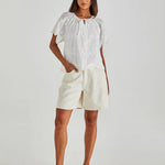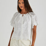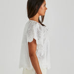 The Ani Blouse brings a soft, romantic vibe to your summer wardrobe. With scallop detailing and broderie fabric, it's equal parts pretty and polished. The relaxed fit makes it feel effortless just the right kind of elevated.