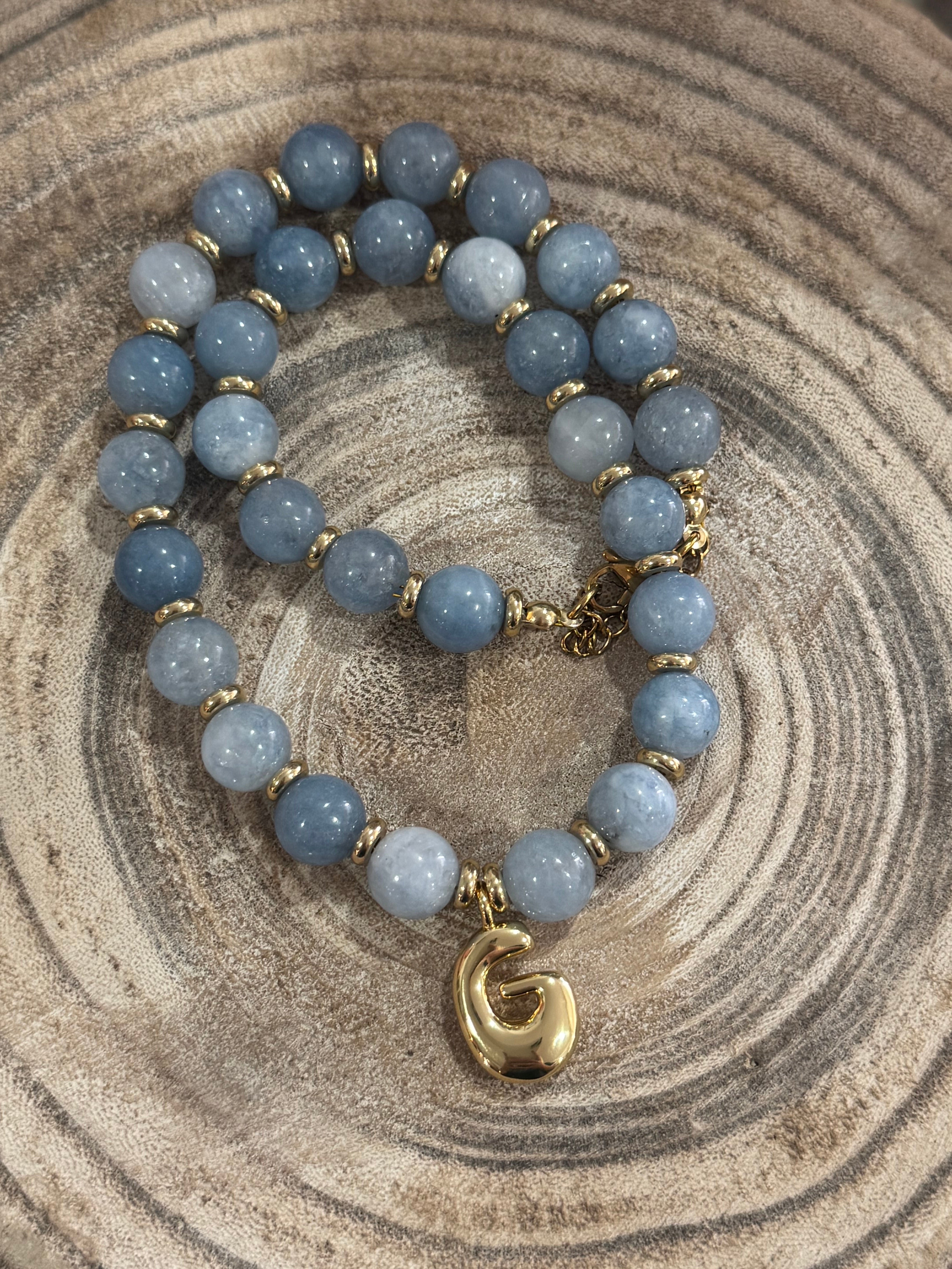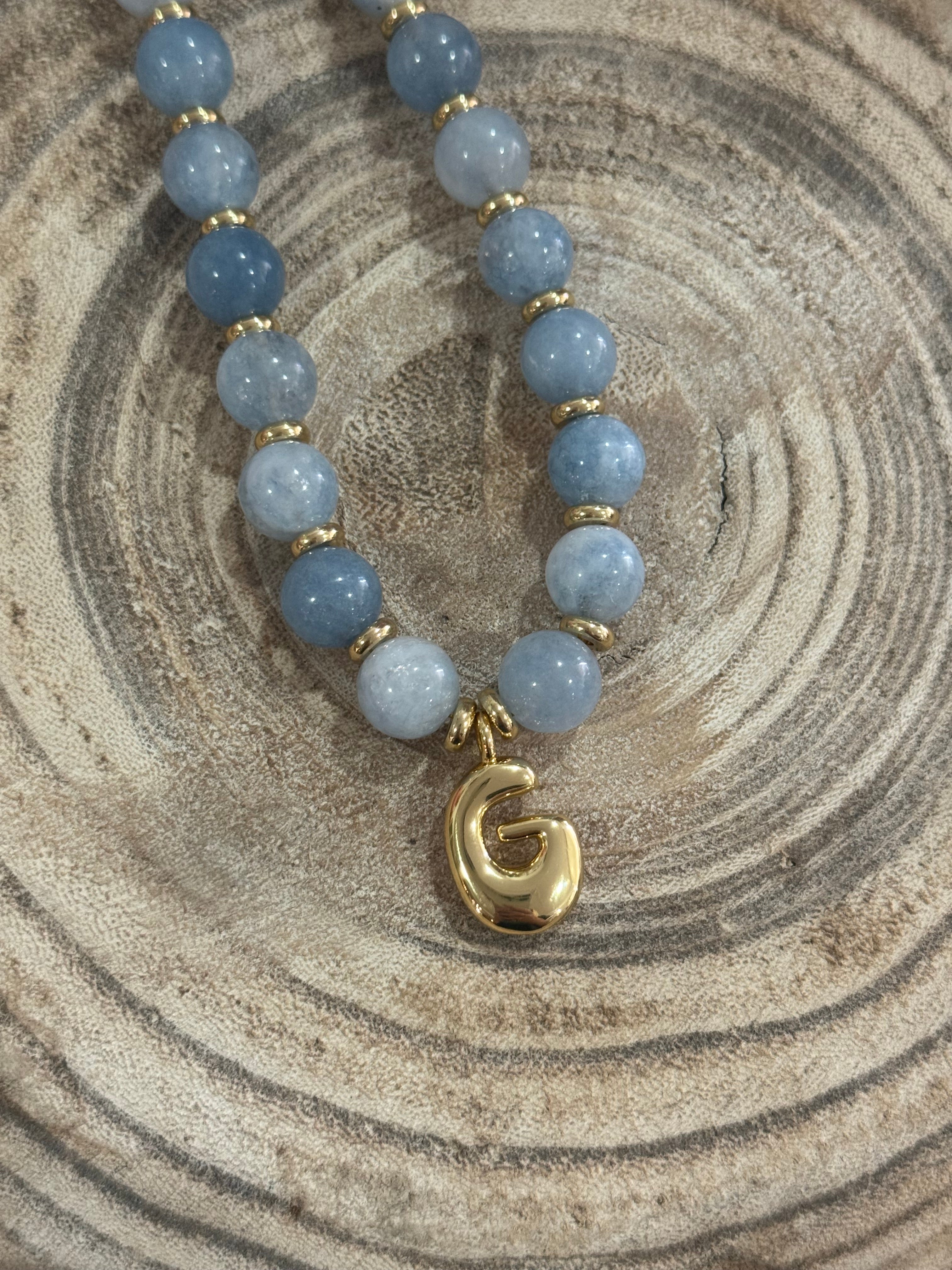 Beaded Blue G Necklace