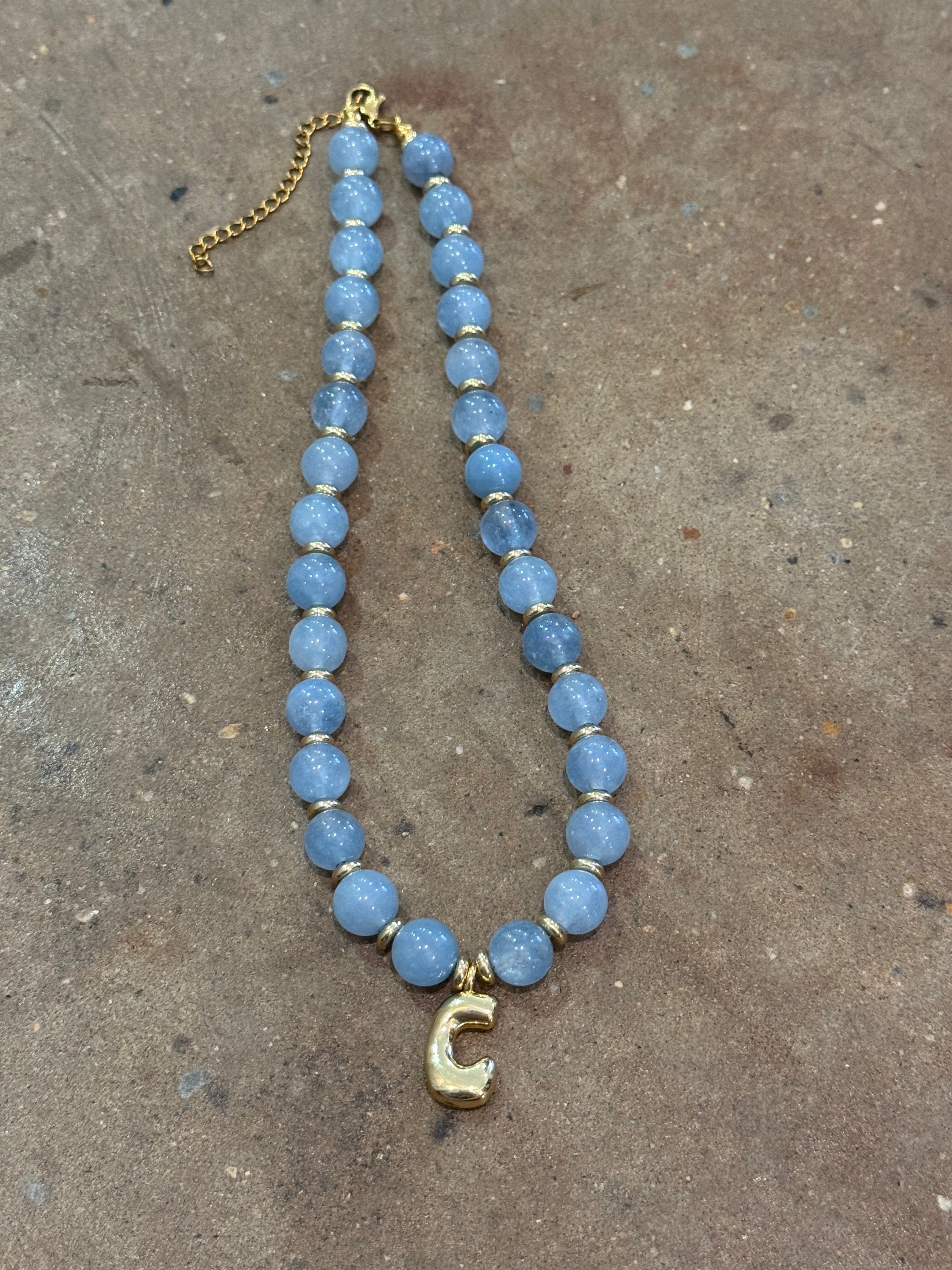 Beaded C Blue Necklace