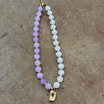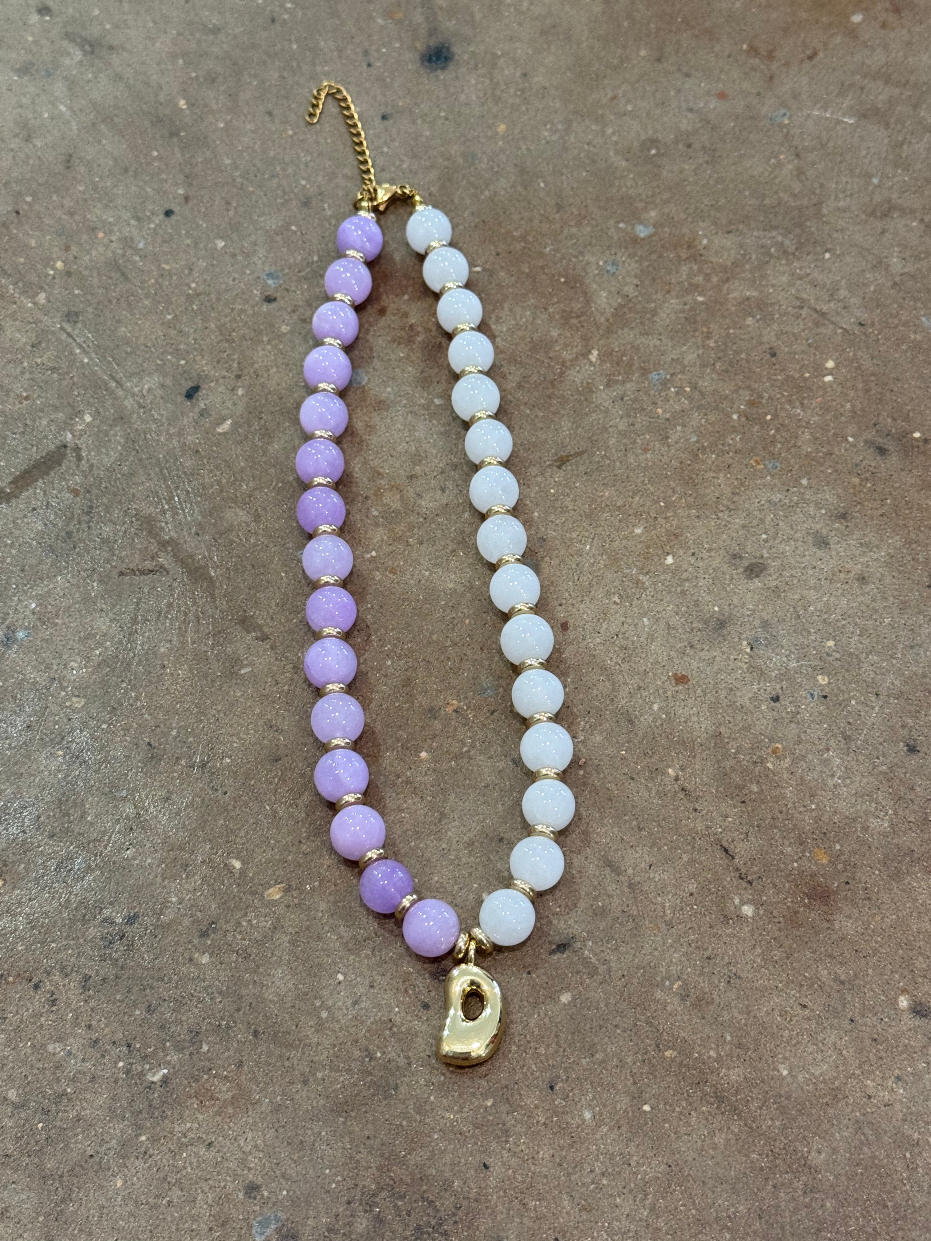 Beaded D Purple & White Necklace