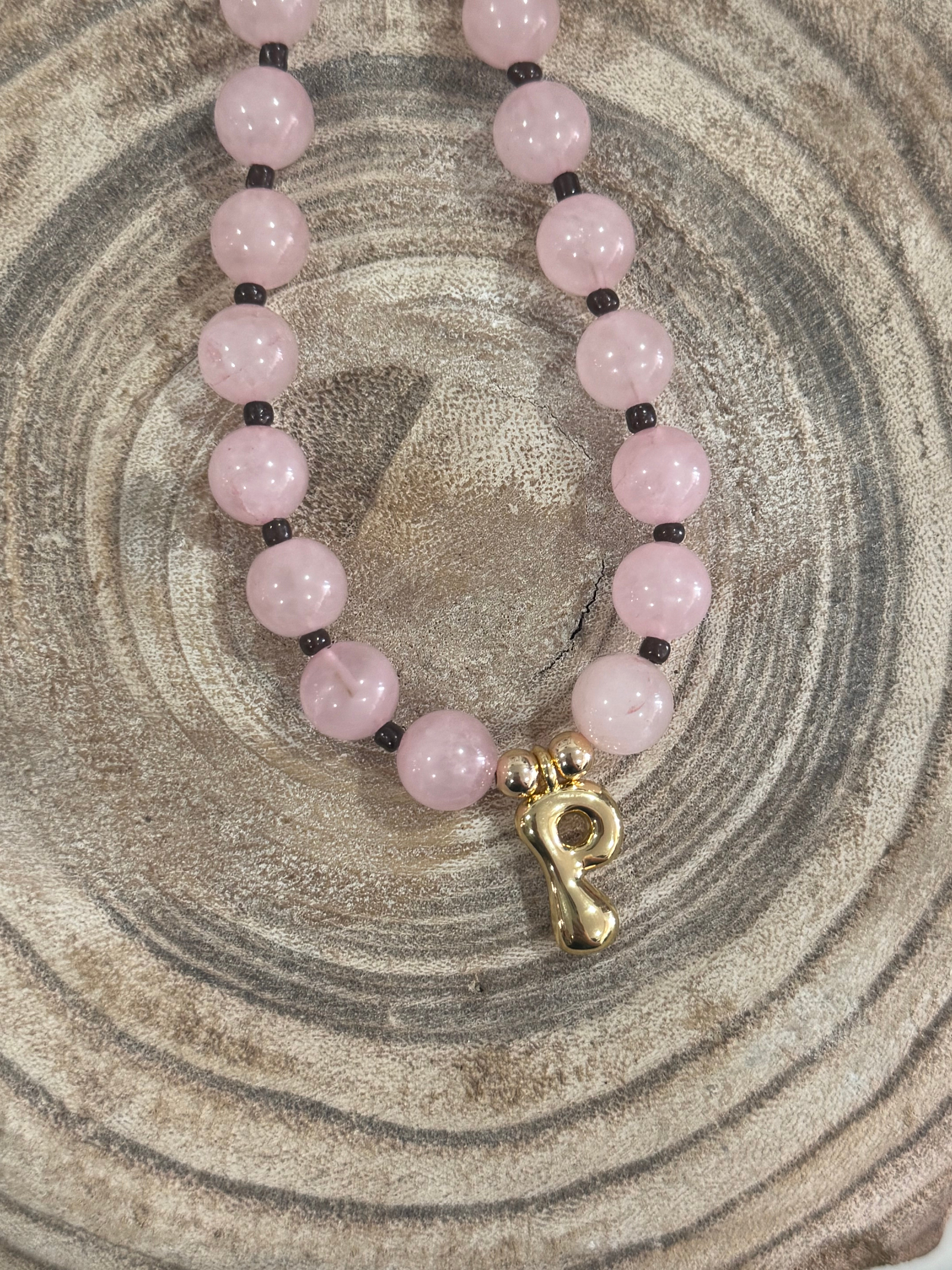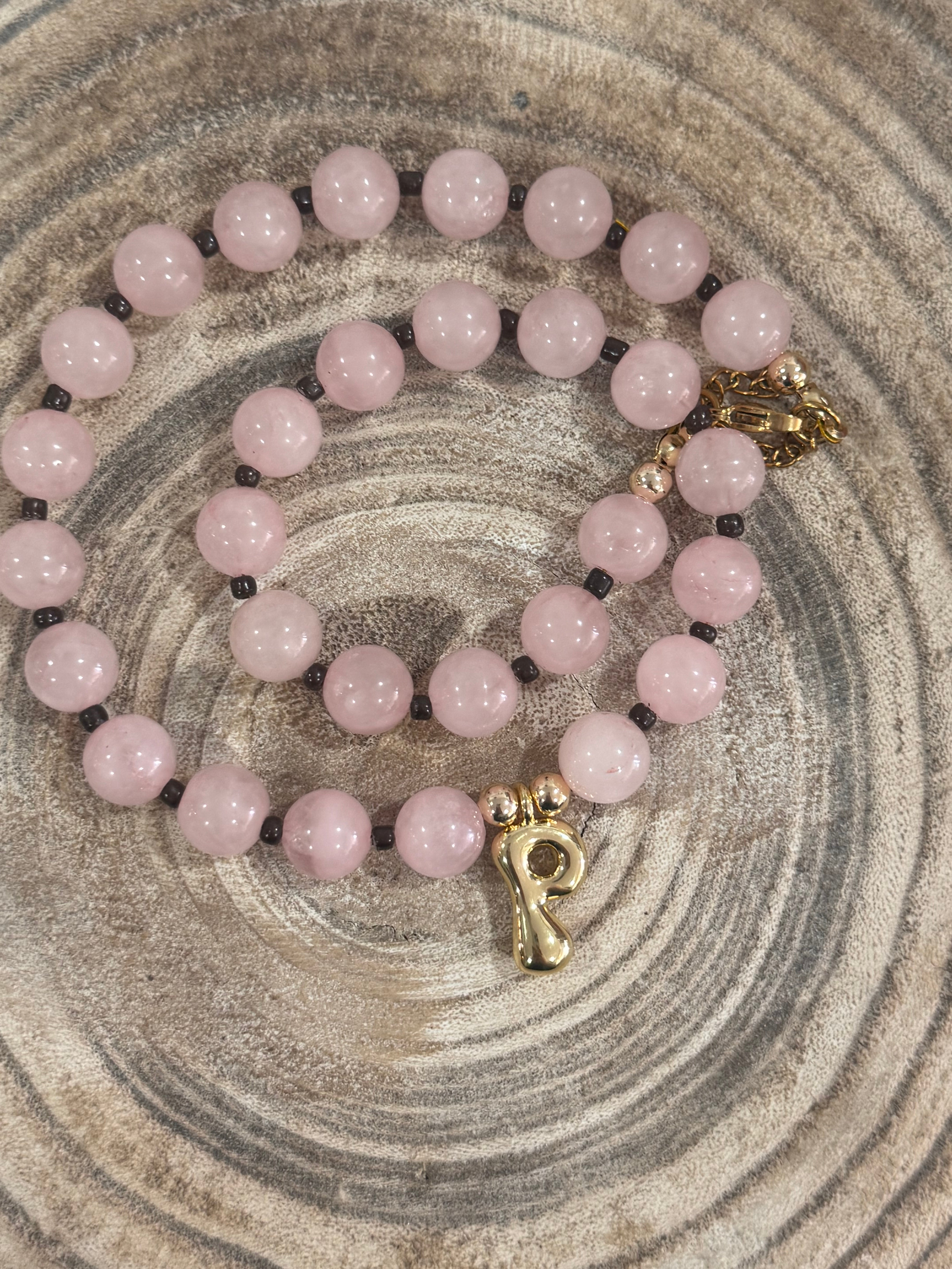 Beaded Pink P Necklace