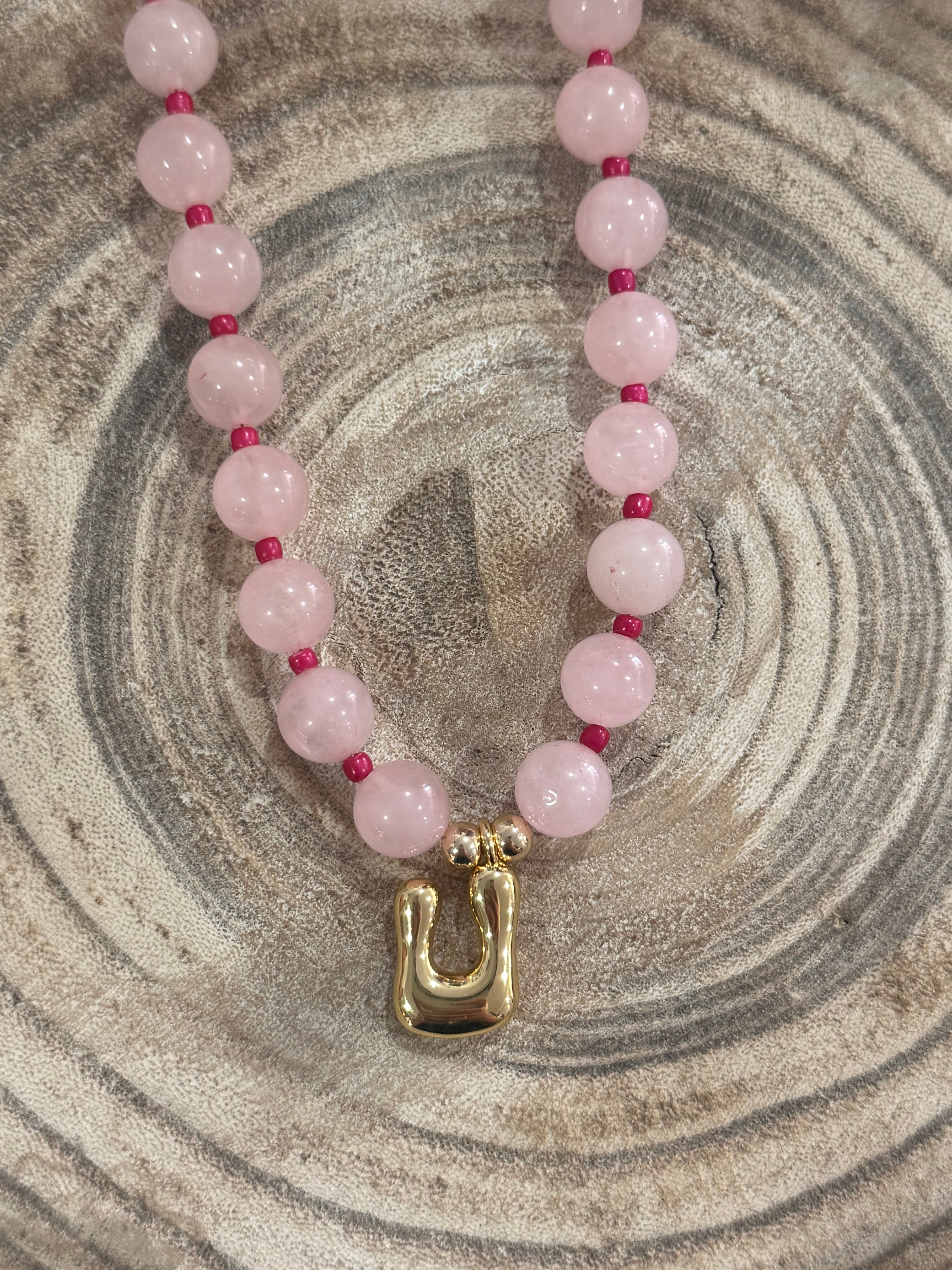 Beaded Pink U Necklace
