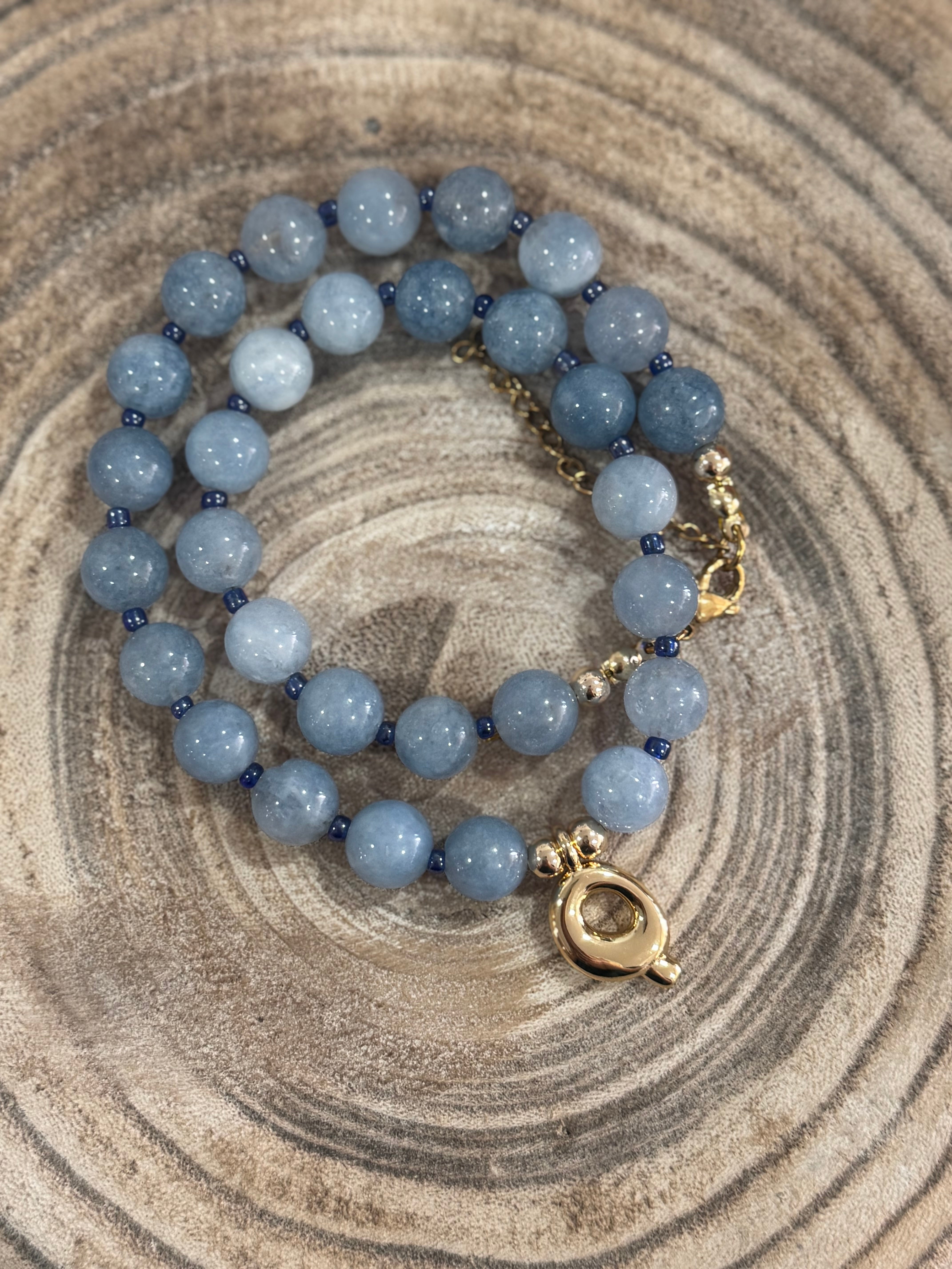 Beaded Blue Q Necklace