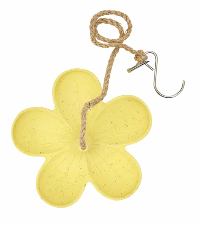 Cute petal shaped bird feeders will attract beautiful birdlife to your yard. Simply hang with the rope and hook supplied and fill the petals with seed. Made from bamboo fibre, hemp string with 28cm drop and galvanised iron hook. 100% Biodegradable. 3 colours available. Each comes packaged in cute box. Size: 16cm x 16cm x 10cm