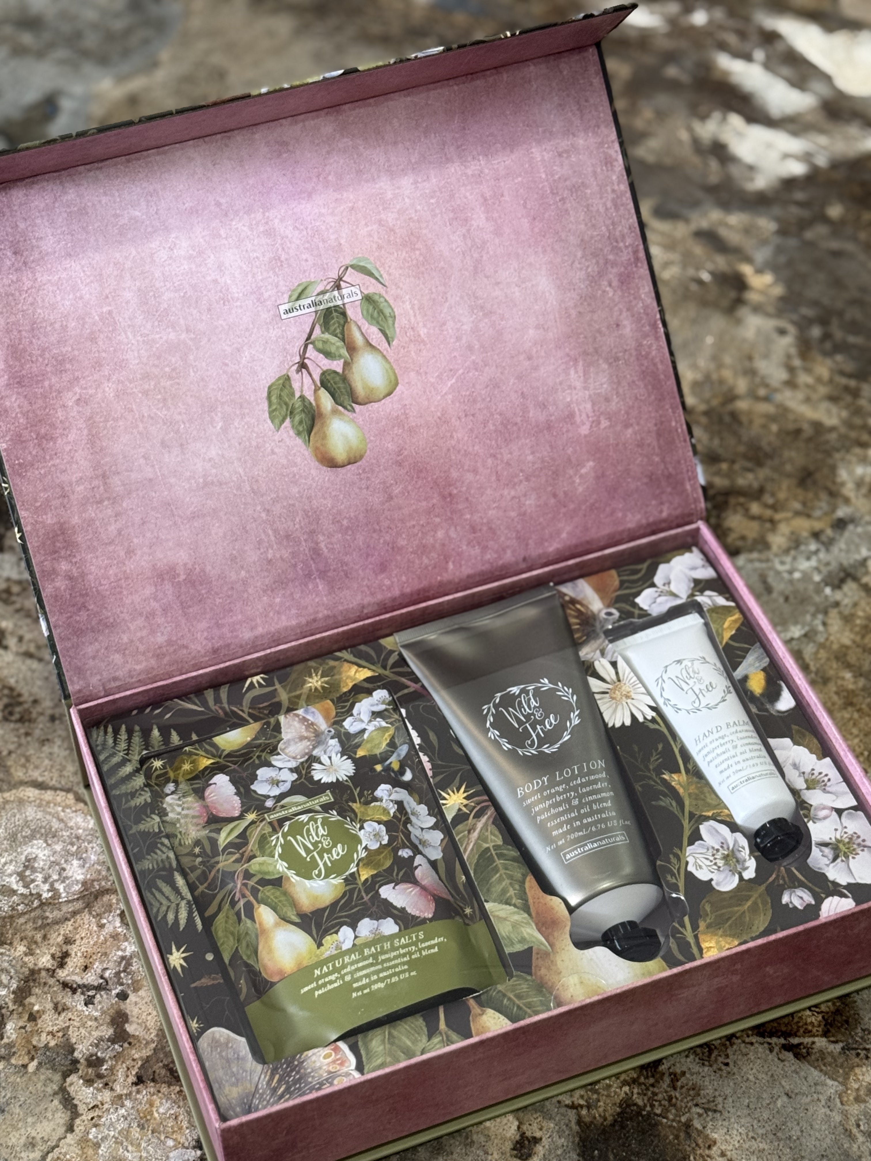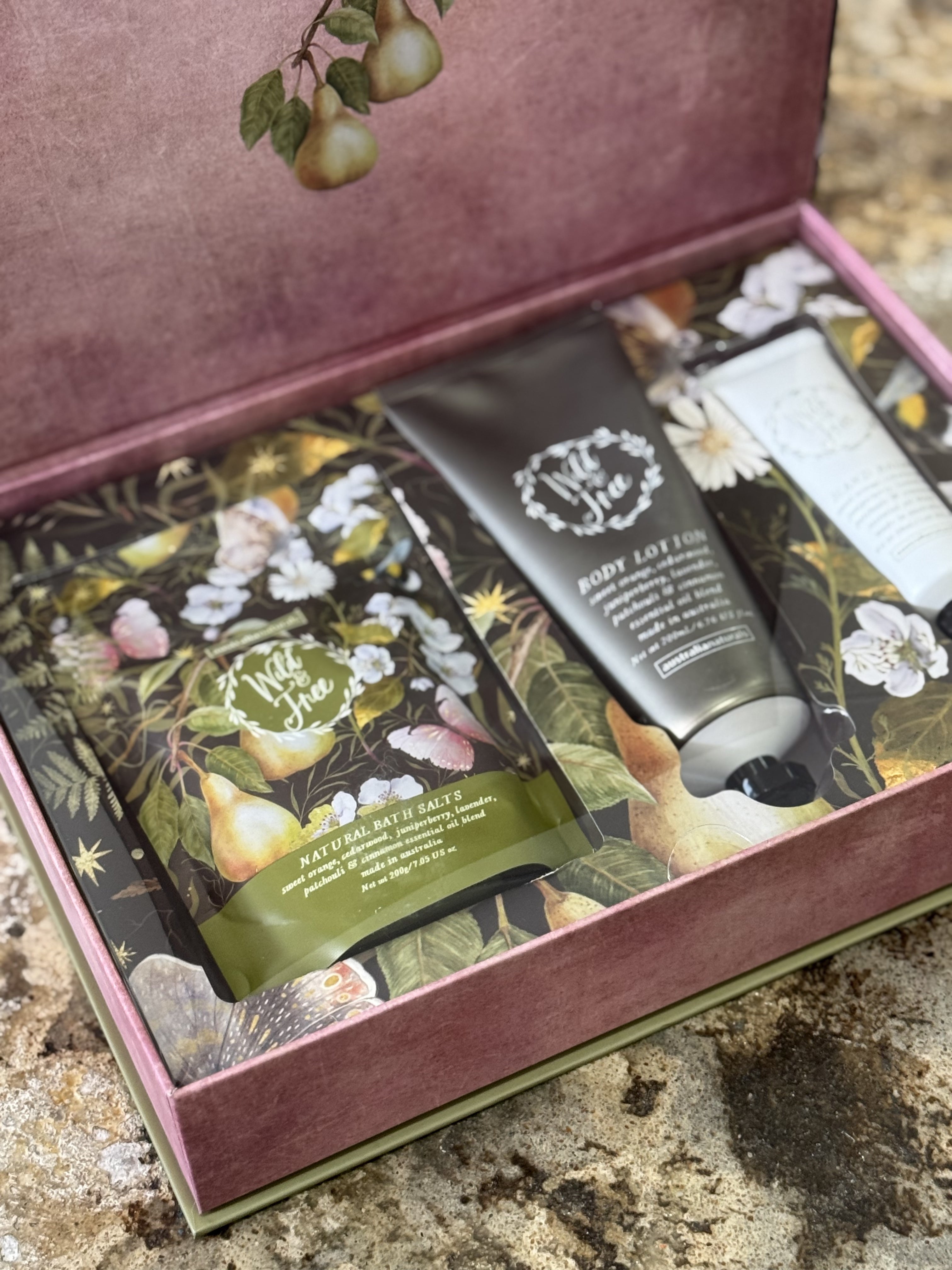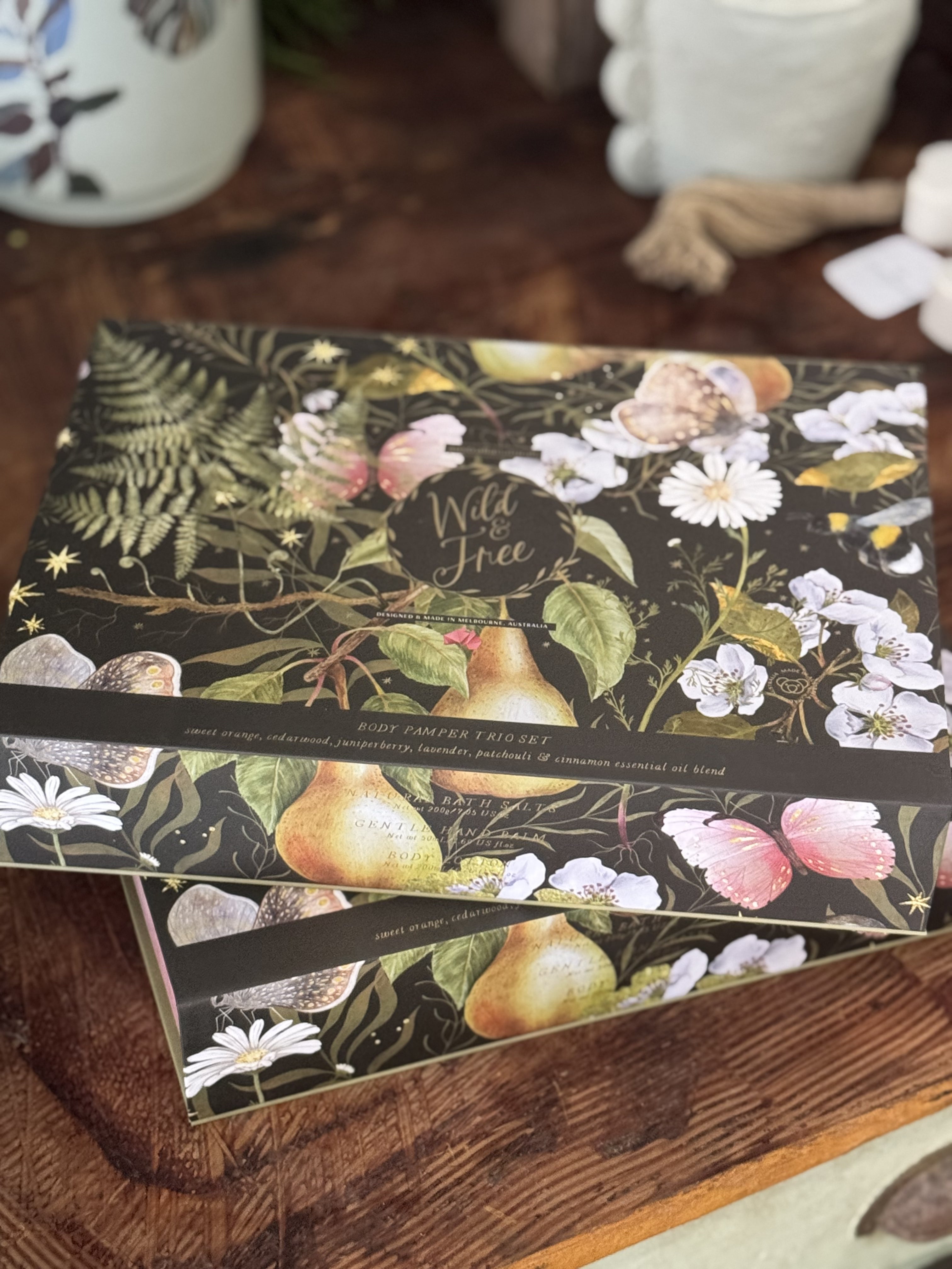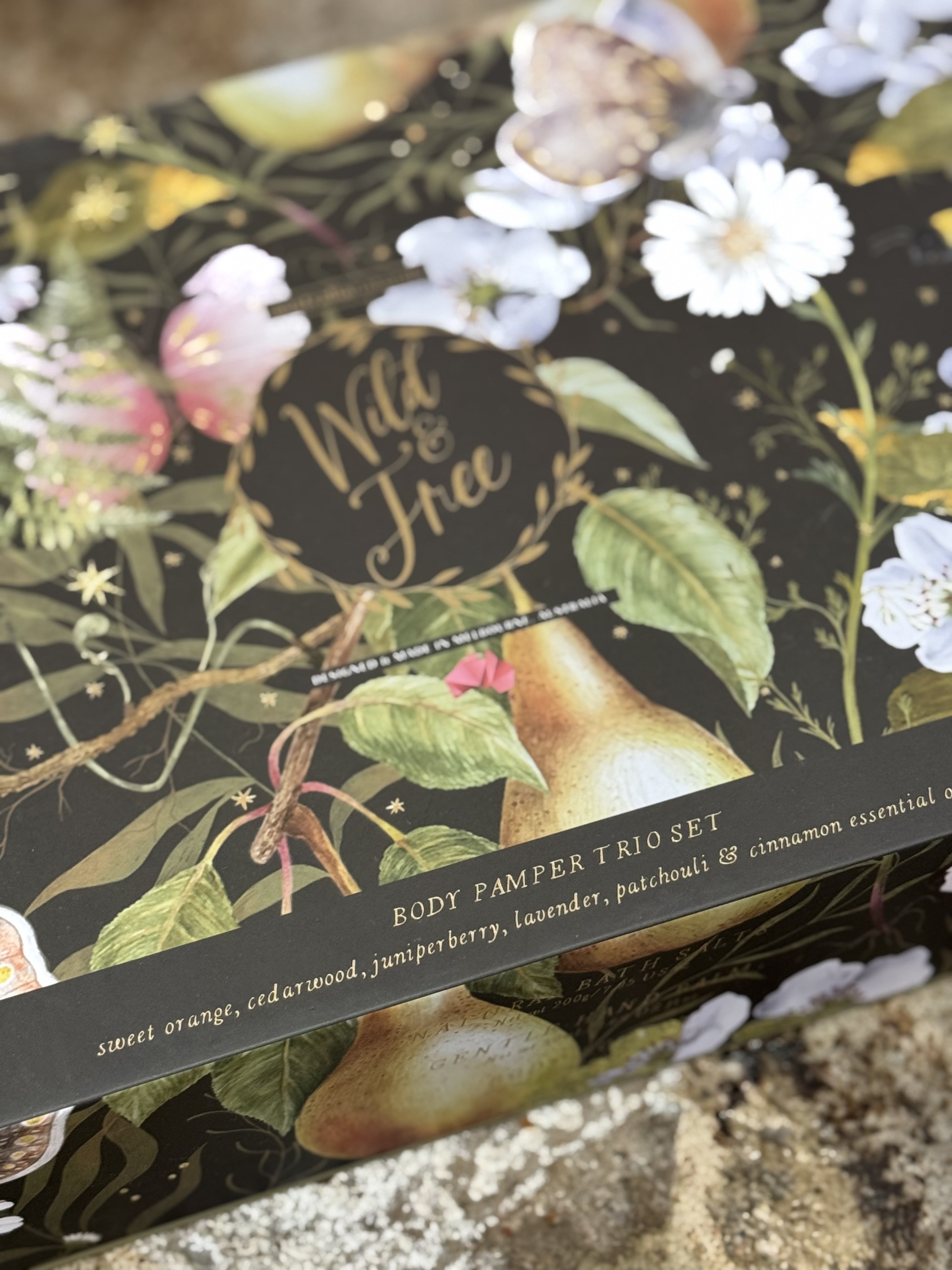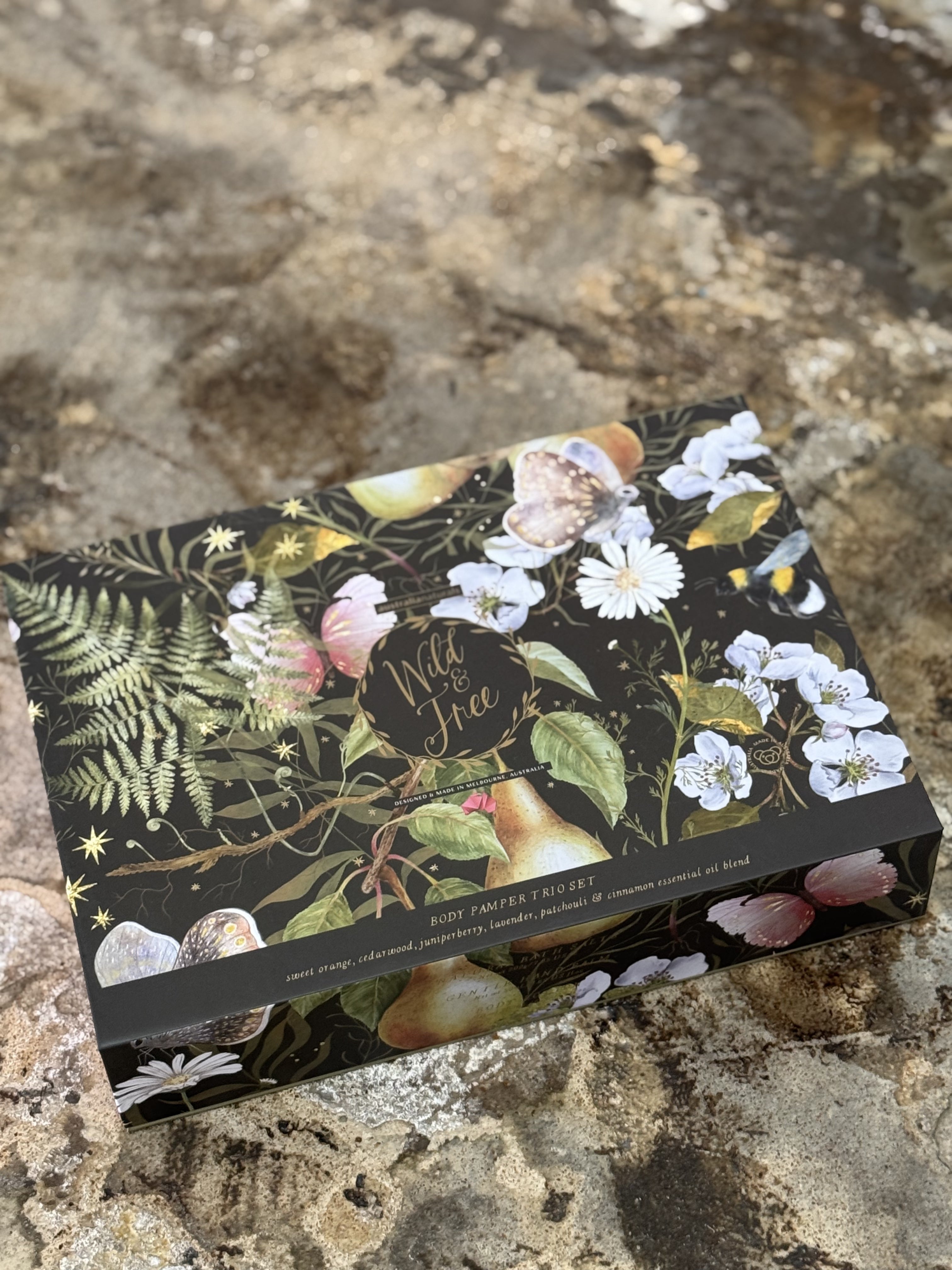 Indulge in the ultimate self-care experience with the luxurious Wild & Free Body Pamper Trio Set. Beautifully presented in a nature-inspired gift box, this trio is designed to rejuvenate your body and uplift your senses.