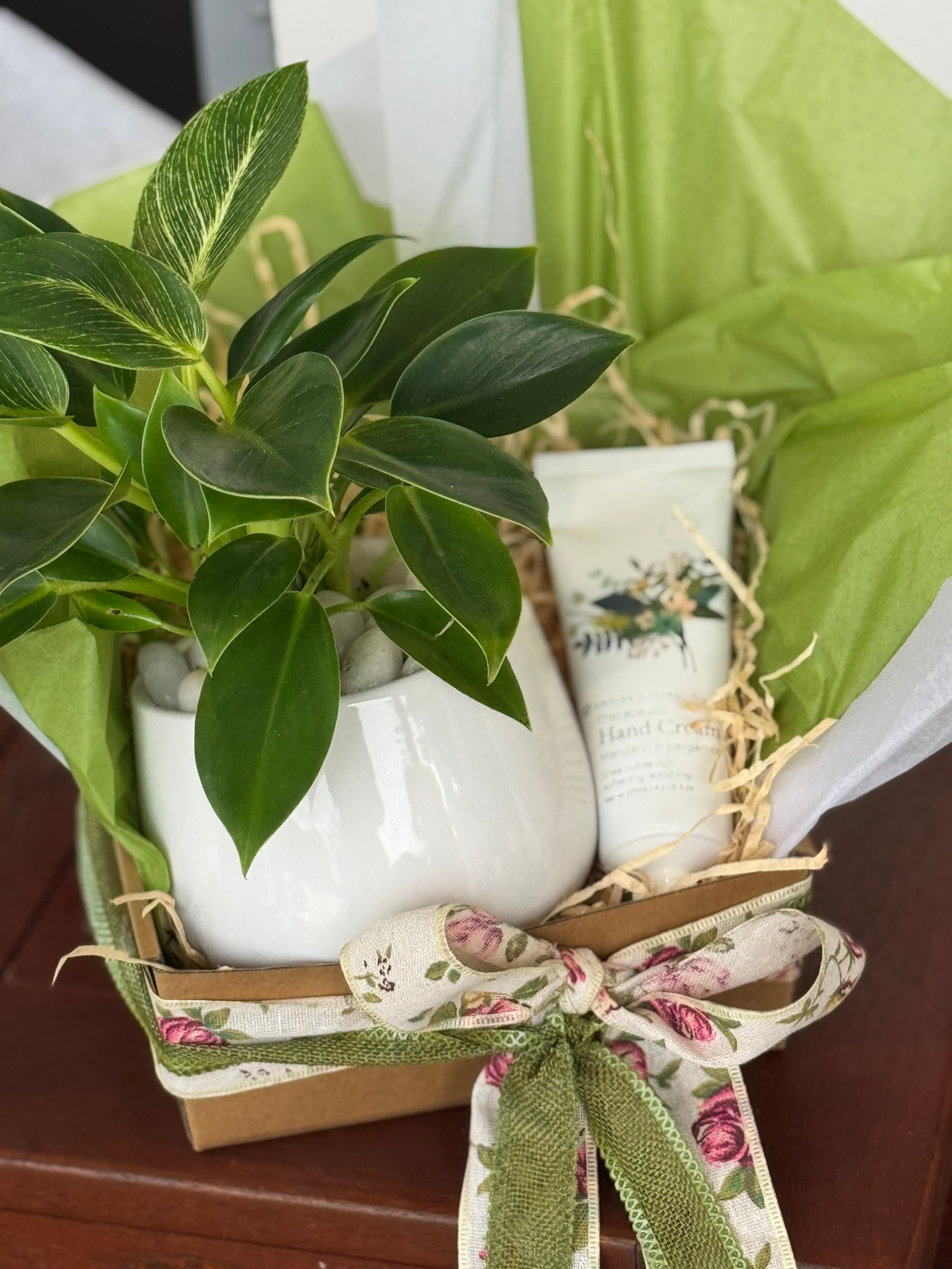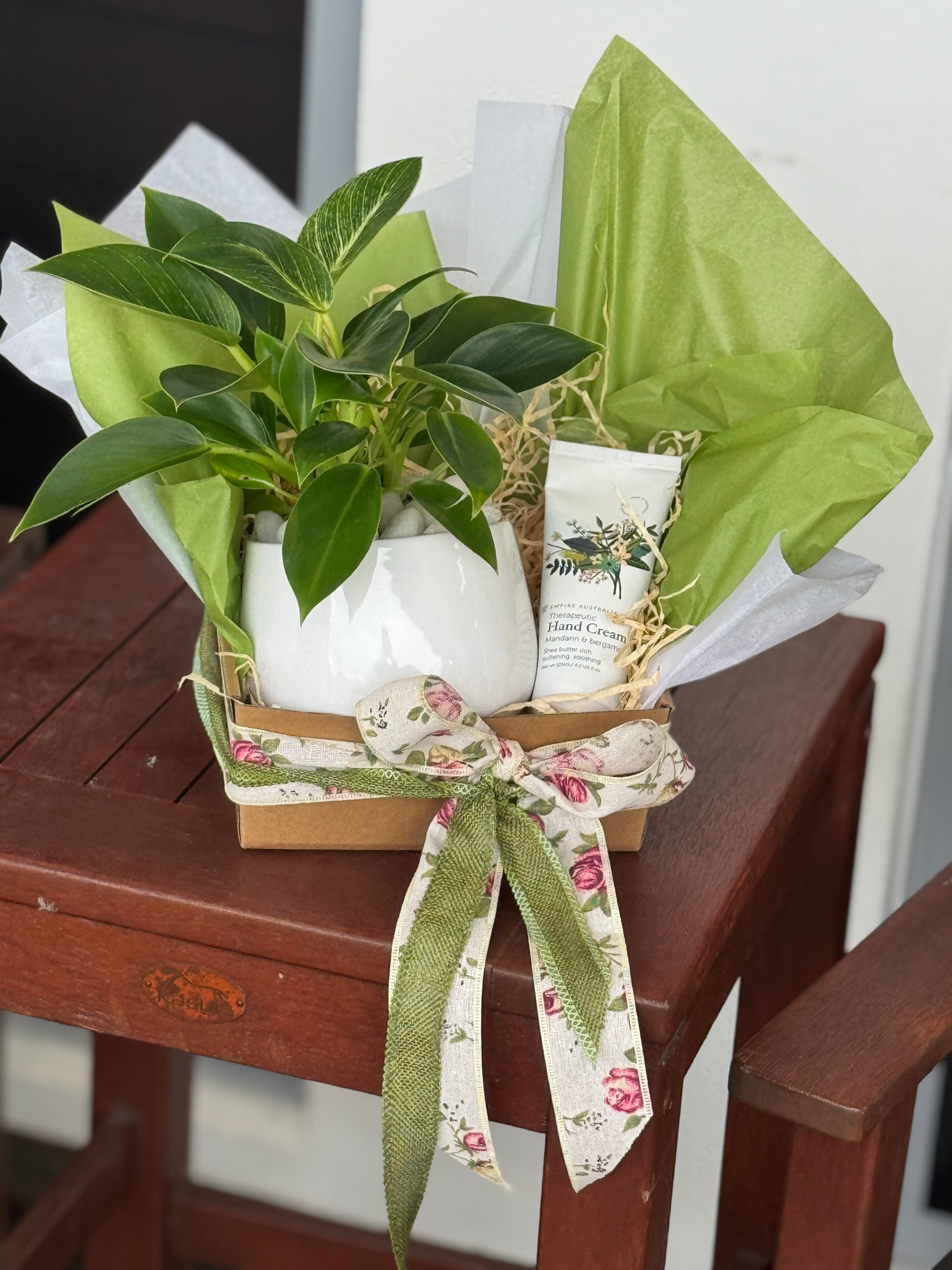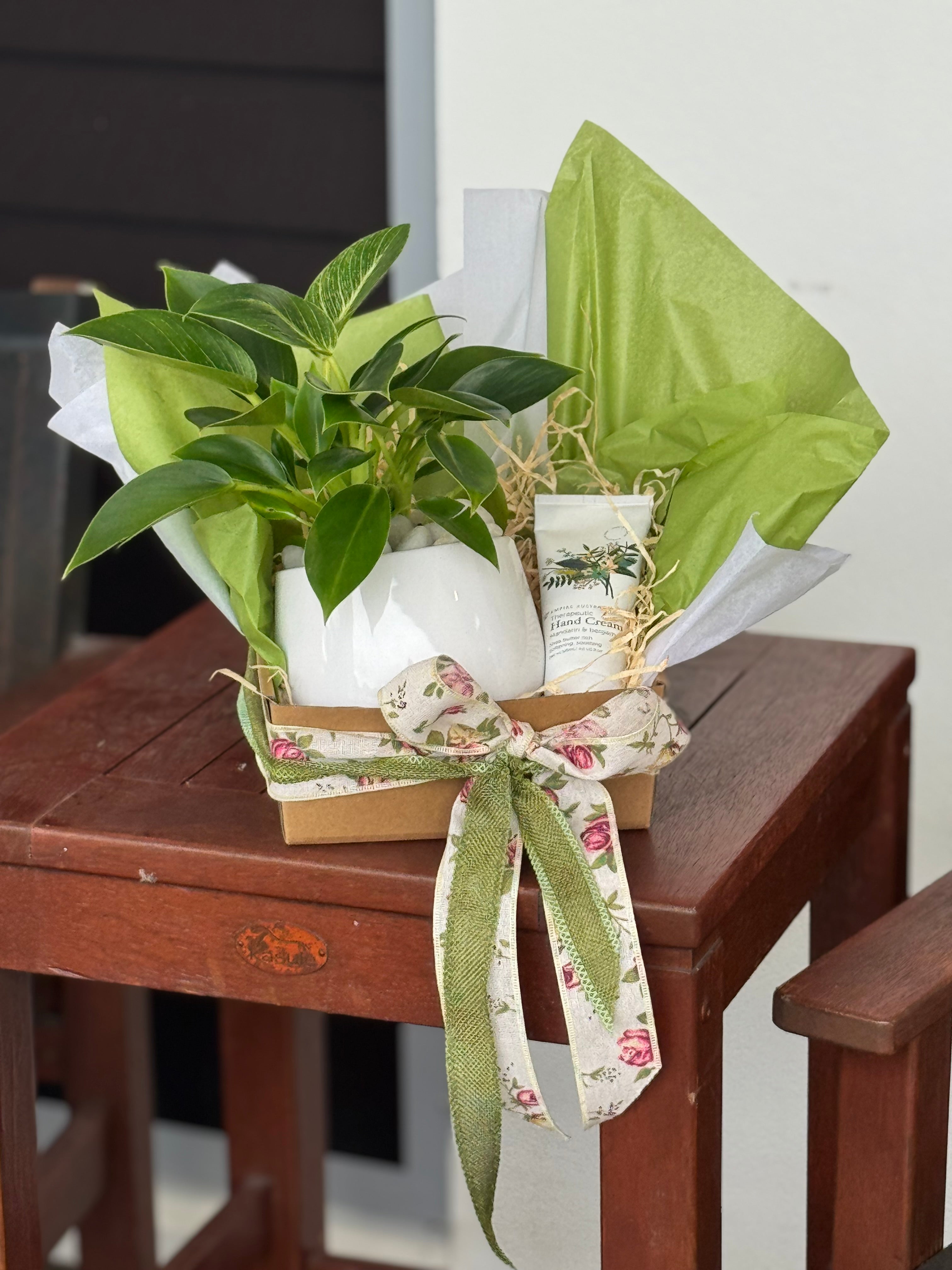 Bring a little serenity indoors with our Green Grace Gift Hamper. Featuring a hand-selected, lush indoor plant potted in a stylish ceramic pot and topped with decorative stones, this gift is all about calm and care. Paired with a beautifully scented hand cream, it’s a thoughtful gesture for birthdays, thank-yous, or just because.