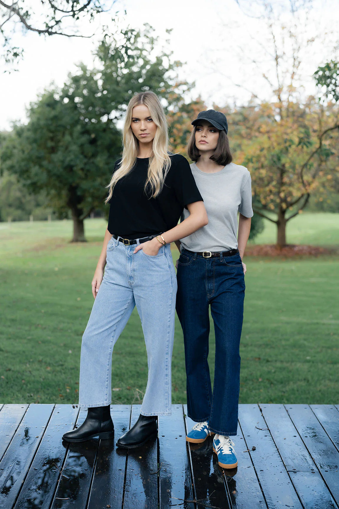 Sorry guys skinny jeans are dying – it’s time to move on… or try something new! We have designed a jean fit for comfort and style. A versatile piece that will mix and match with all your wardrobe staples. The straight cut offers easy fitting (unless your very curvy - it may not suit) and is designed to be worn with a belt if you need to pull the waist in a little. They are not super high or tight in fit – in fact size up if you want a looser fit and cinch with the belt or wear them lower on the hip. They look great with sneakers or a heel.