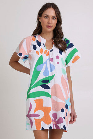 The Boom Shankar Etta Cotton Dress is a fun new season shift dress with short flutter sleeves and a deep front keyhole neckline. The above-the-knee length makes it perfect for petite birdies, the pockets make it practical, and the bold print makes it fun! All it needs is slides and a sun hat!