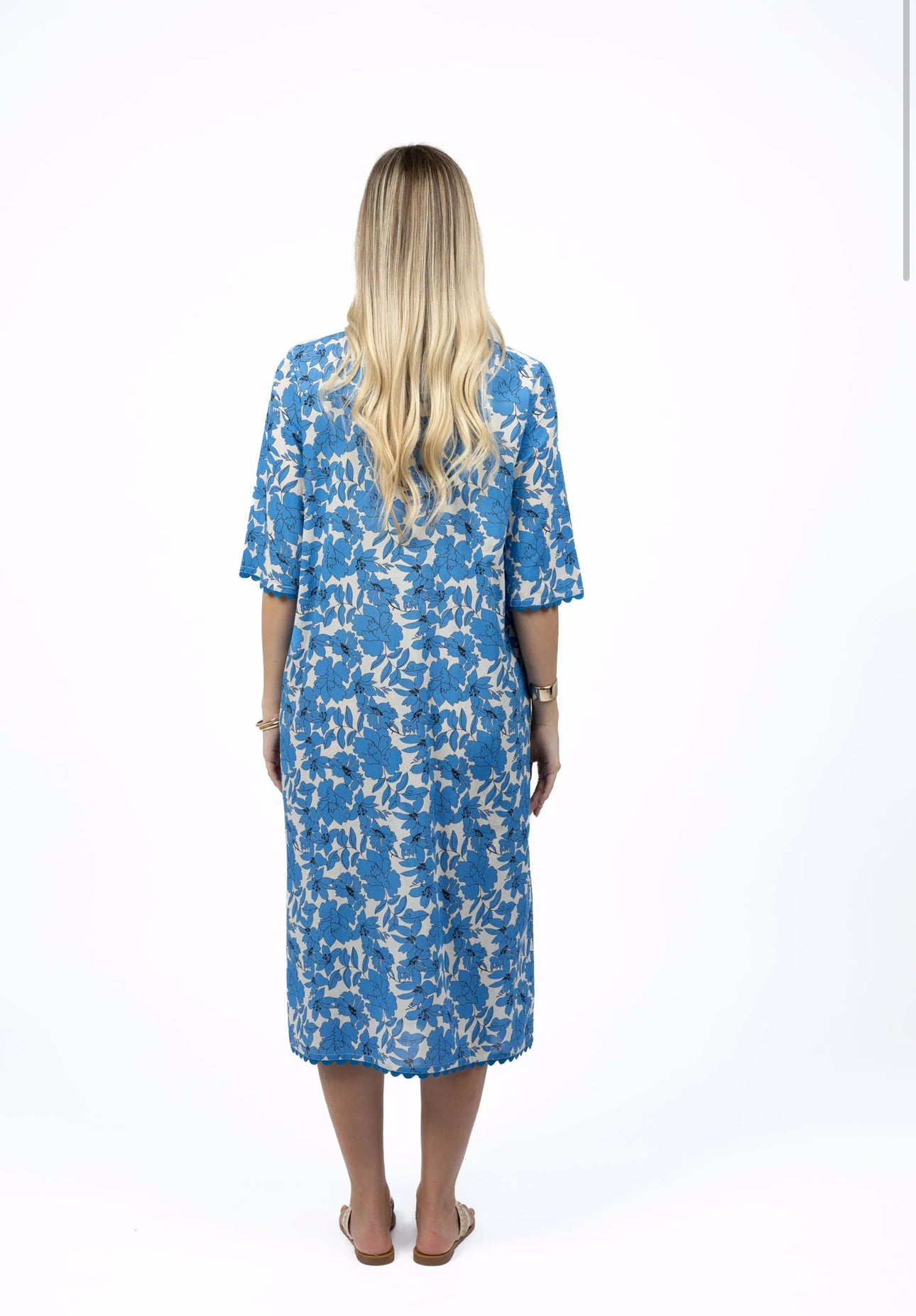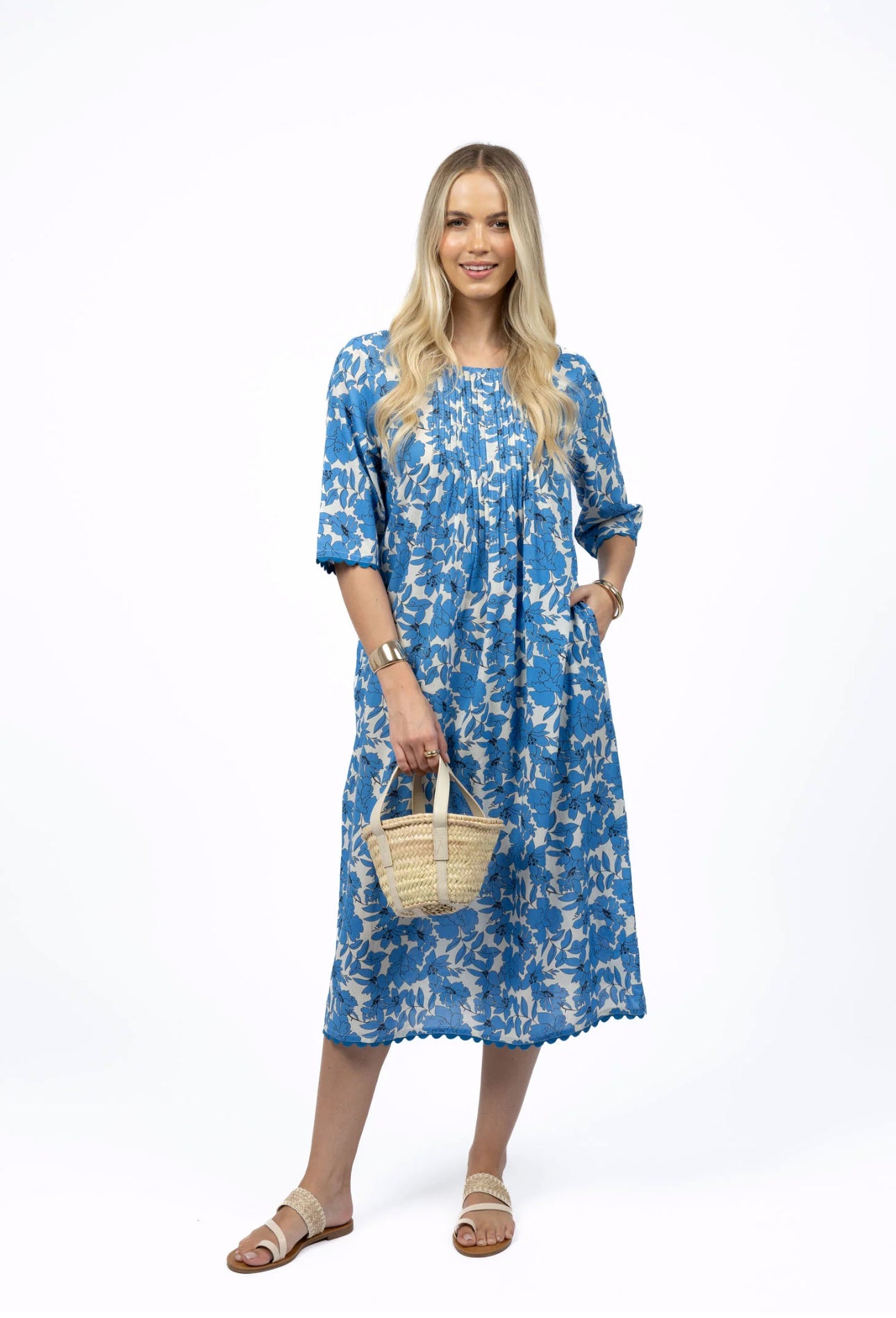 The Ziggy dress is a perfect no fuss throw-on style. The small pintucks at the bust offer a super flattering fit and the trim at the sleeves and hem complete the lovely design touches. Designed for those who love a sleeve and like to cover their knees. Our exclusive Fleur print offers a great summery vibe, and our soft cotton voile is designed to keep you cool and comfortable all summer long.