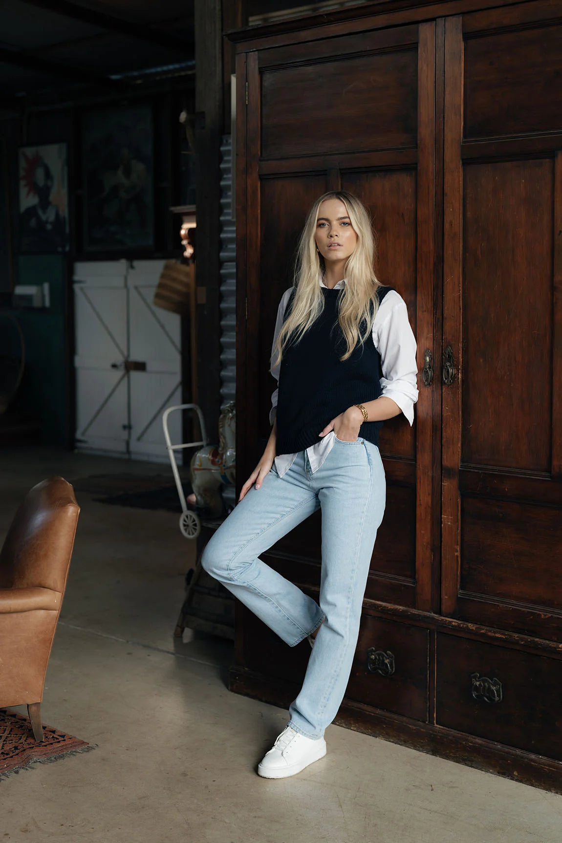 Our Gale vest has been designed with all weather in mind – perfect for layering during the cooler months but also a stylish piece worn on its own. Crafted from 100% mid-weight cotton, this cute knit is super comfy and breathable whilst keeping you cozy and warm where you need it most. Cotton fibres tend to be very low pilling, she will be low maintenance, and you will get years of wear out of this piece.
