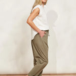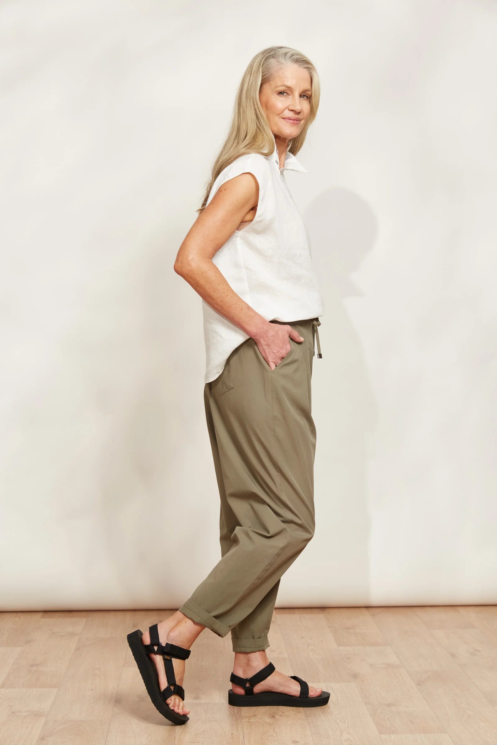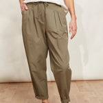 Unwind in style with the La Plage Pant, a fresh take on the classic tapered trouser. These pants are designed for comfort, boasting a half-elastic drawstring waist and a loose, tapered fit that's modern and relaxed. In a lightweight cotton blend, these pants feature functional side and patch pockets and subtle pintuck detailing. Pair them with a tank or loose tshirt and slides, and you're all set for a laidback weekend vibe.