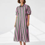 Liberty Rose Wide Stripe Dress - Green + Musk