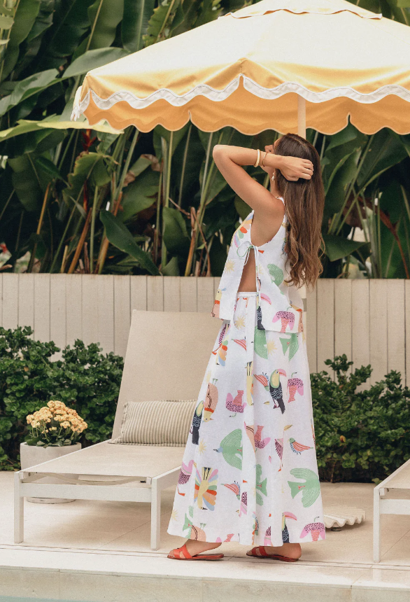 The Luca Skirt features a thin drawstring waist with side pockets and a full, flow hem making it the perfect summer stand out piece for those long lunches with family and friends.