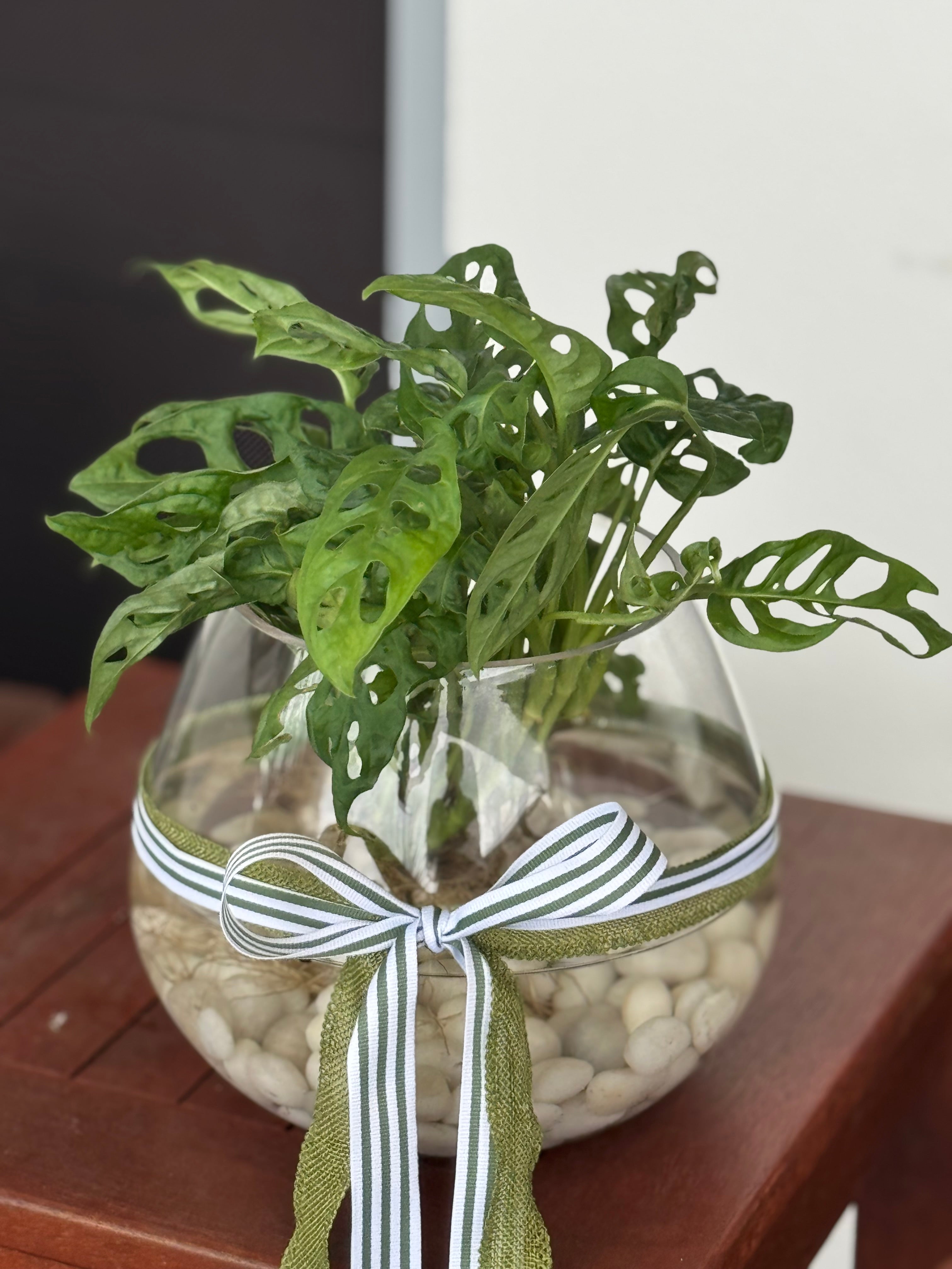 Marvel in the beauty of a water Indoor plant, flourishing in its glass vessel and gracing any space with its large, extravagant beauty. Requiring little effort, this plant is ideal for anyone seeking a convenient yet chic addition to their decor.