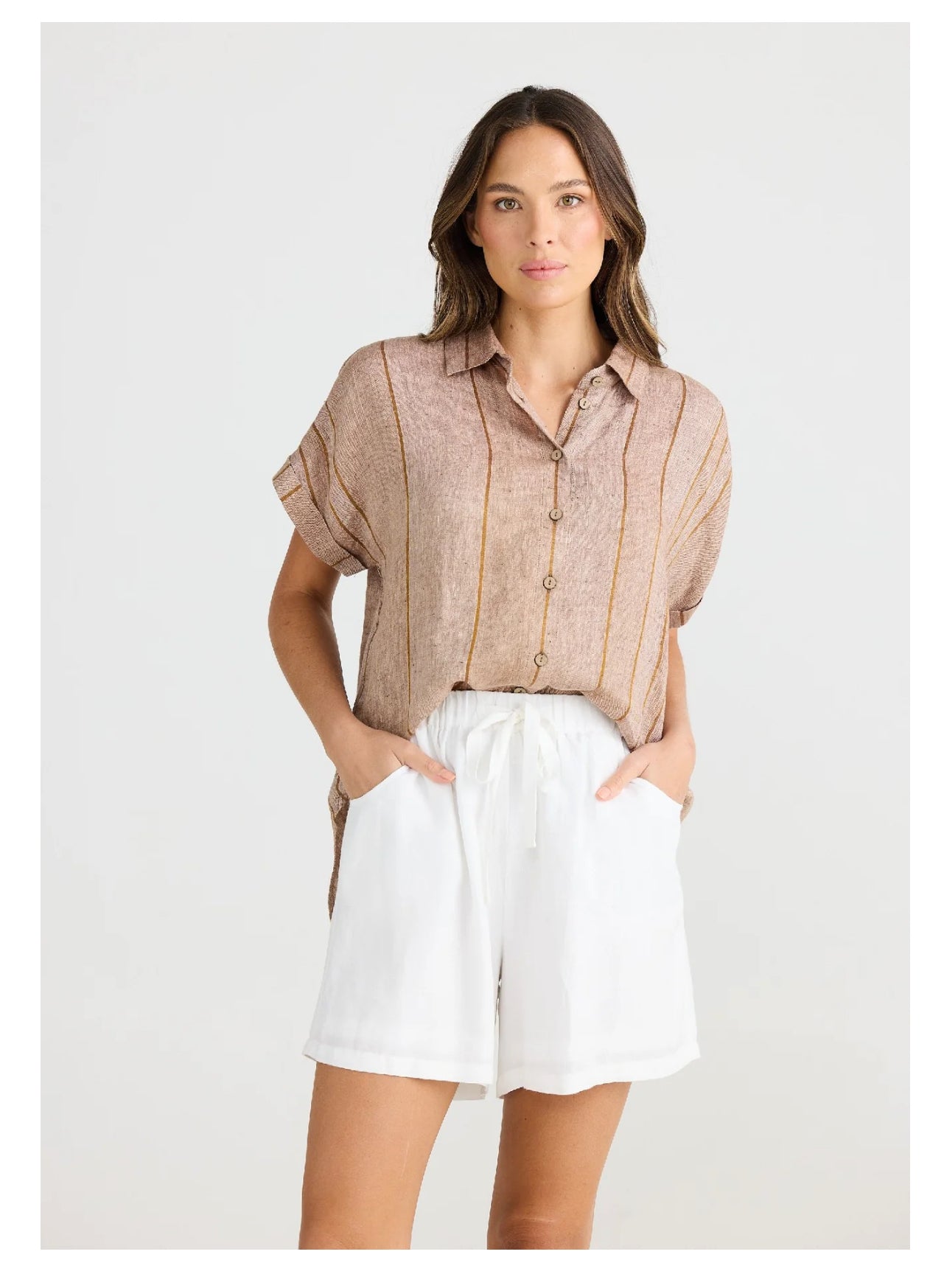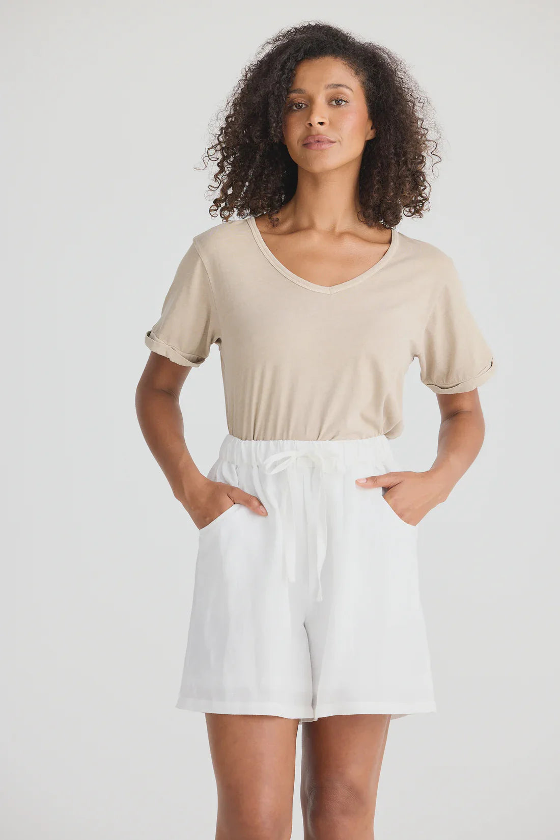 The Miami Shorts from Shanty Corporation feature an elasticised waistband with a draw string tie, front pockets and a wide leg silhouette. Crafted from 100% linen, these relaxed shorts provide the ultimate comfort for warm and cool weather.