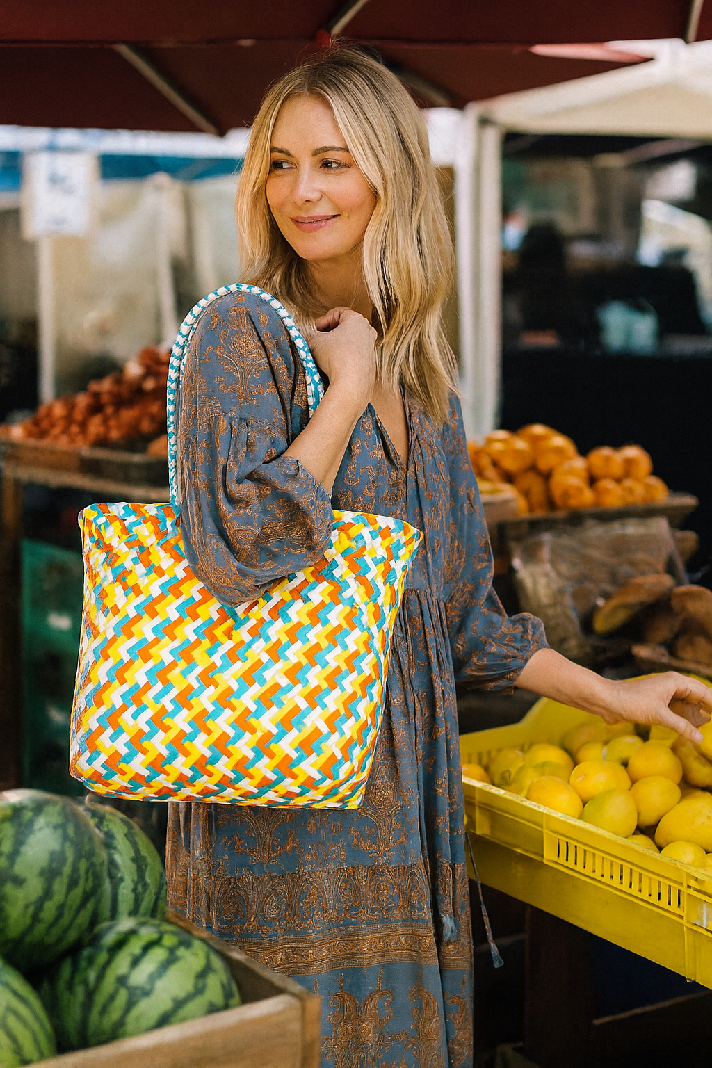 Size: - Large Tote Approx. Dimensions: H 30cm × L 30cm × W 18cm Handle Height: 26cm (Double Handle) Hand woven, new Australian design by Molly Linton