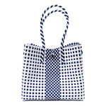Available in XL & Large in Blue or Pink. Size: - XLarge Tote Approx. Dimensions: H 35cm × L 38cm × W 21cm Handle Height: 30cm Hand woven, new Australian design by Molly Linton