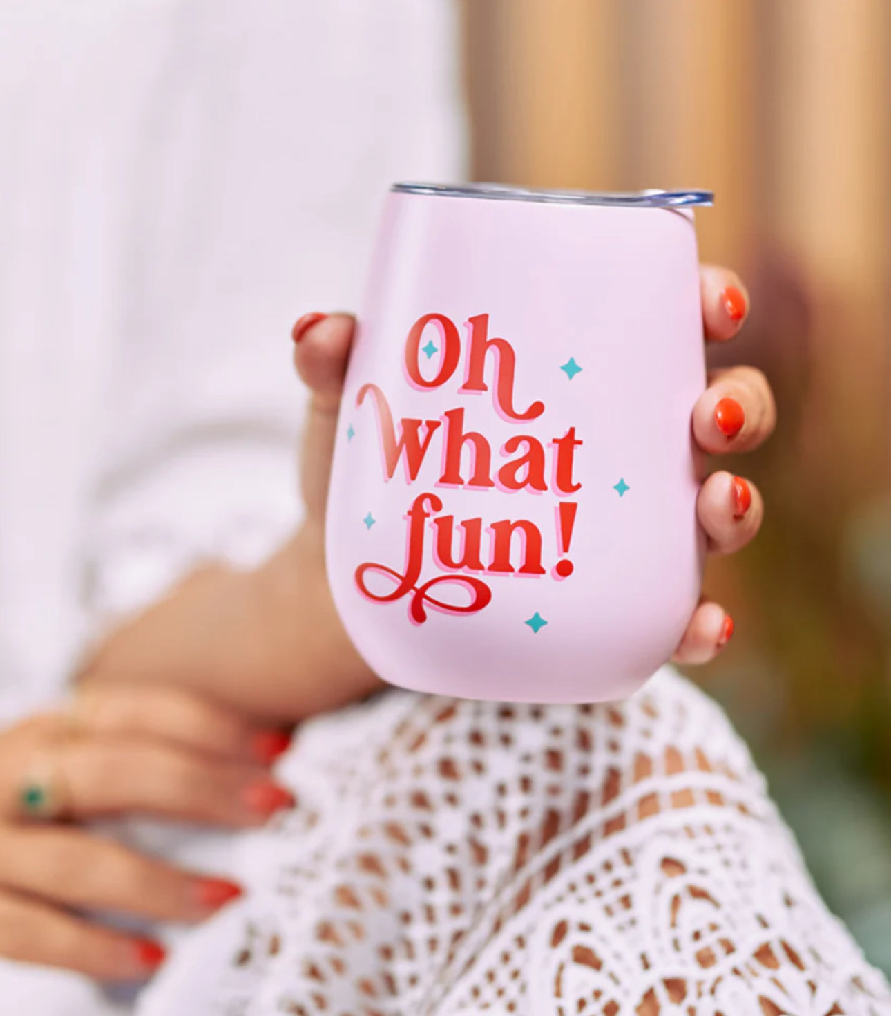 Annabel Trends stainless steel double walled wine / spirit tumblers make the best addition to any picnic or party, keep your drinks chilled for hours. With catchy phrases and groovy designs they are sure to glamp up your camp from the beach to the bush, these tumblers will keep picnics & camping classy! Perfect for our warm Christmas days or xmas party gifts. BPA free, phthalate free and each item is individually boxed making it easy to wrap for gifts. Size: holds 295 ml.