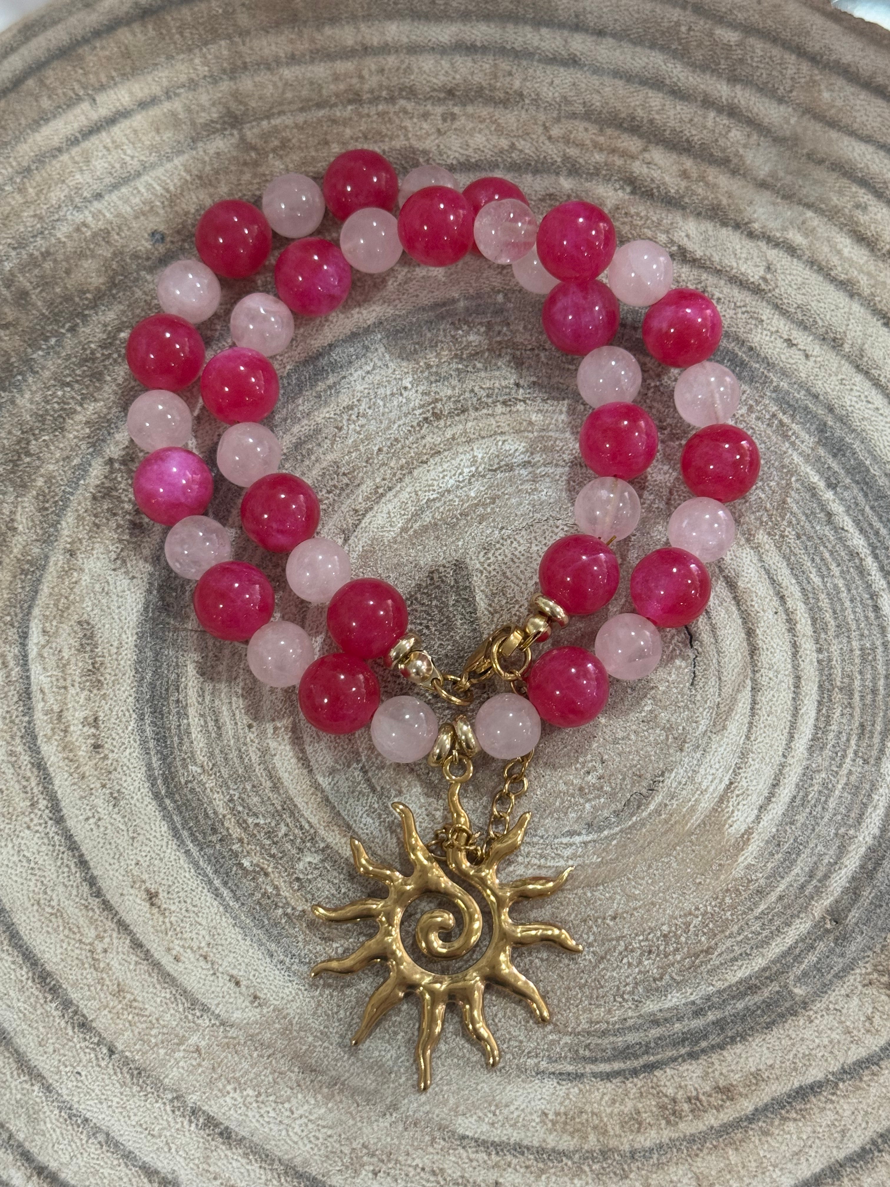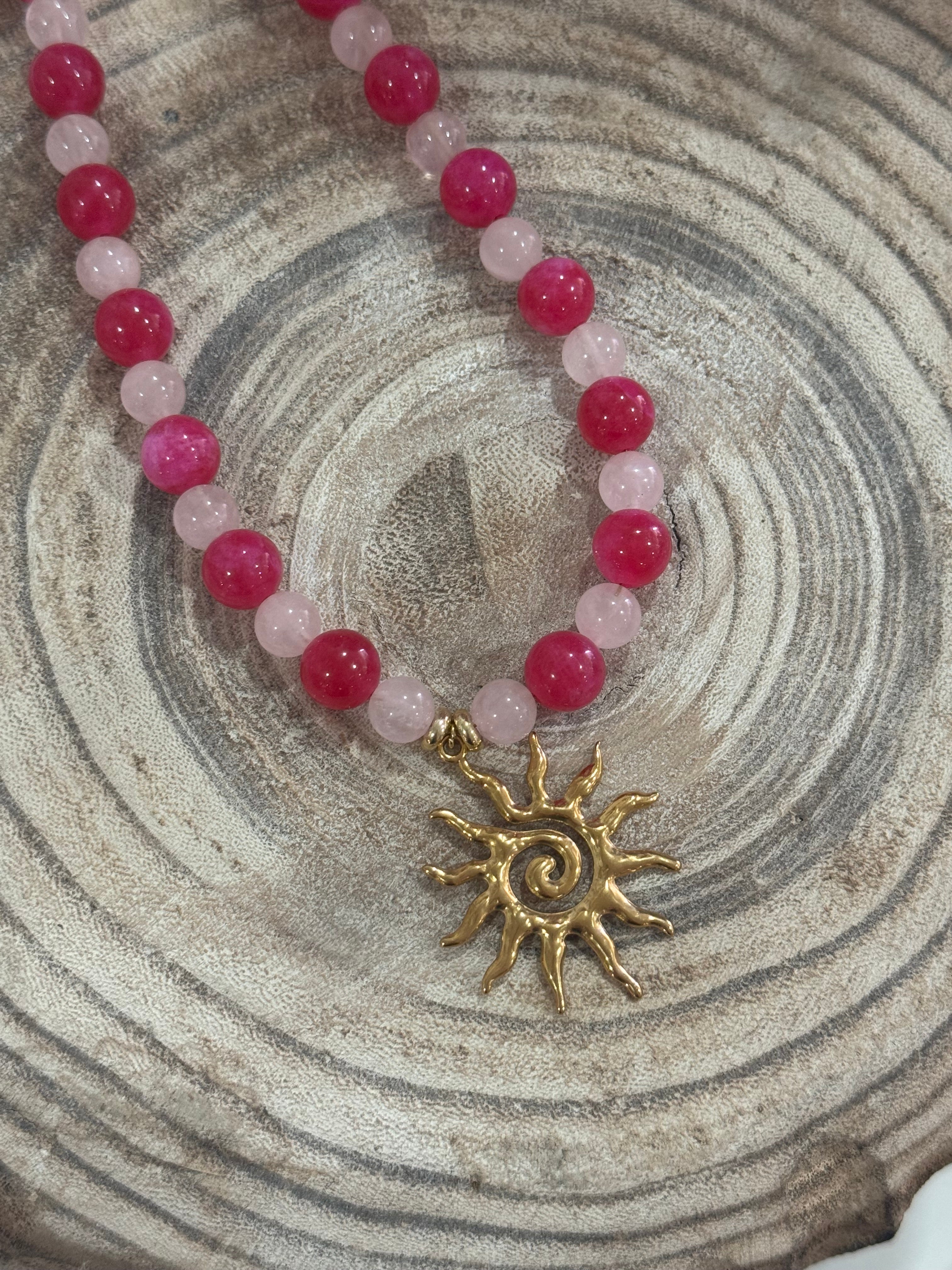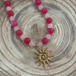 Pink Beaded Sun Charm Necklace