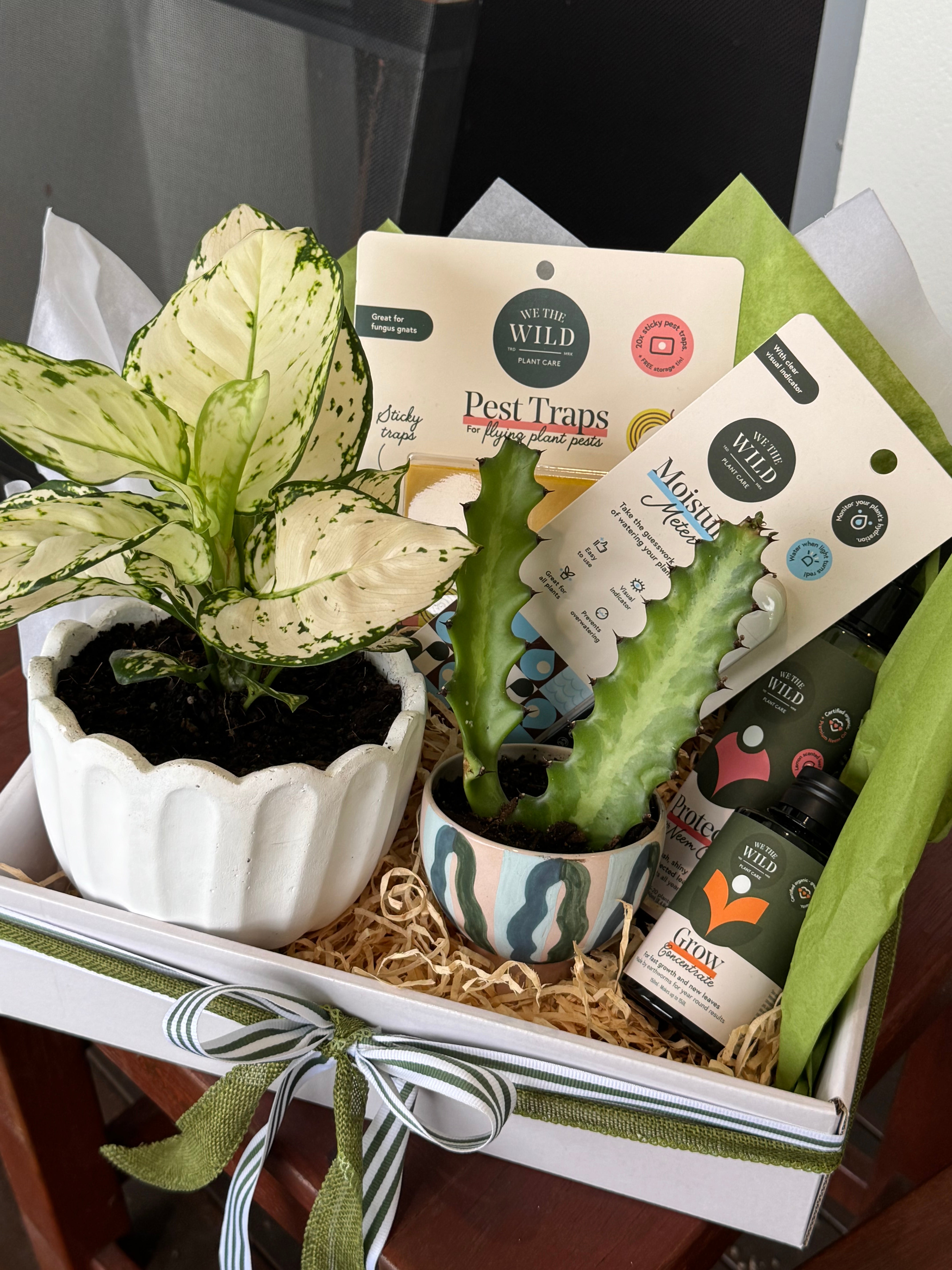 Perfect for any green thumb—beginner or seasoned—the Plant Lover Hamper has everything you need to help indoor plants thrive. This curated gift box includes two stunning potted plants, a full suite of We the Wild plant care essentials (Grow, Protect, and Support formulas), sticky pest traps, and a moisture meter for foolproof watering. It’s the ultimate gift for plant lovers who want to grow happy, healthy plants.