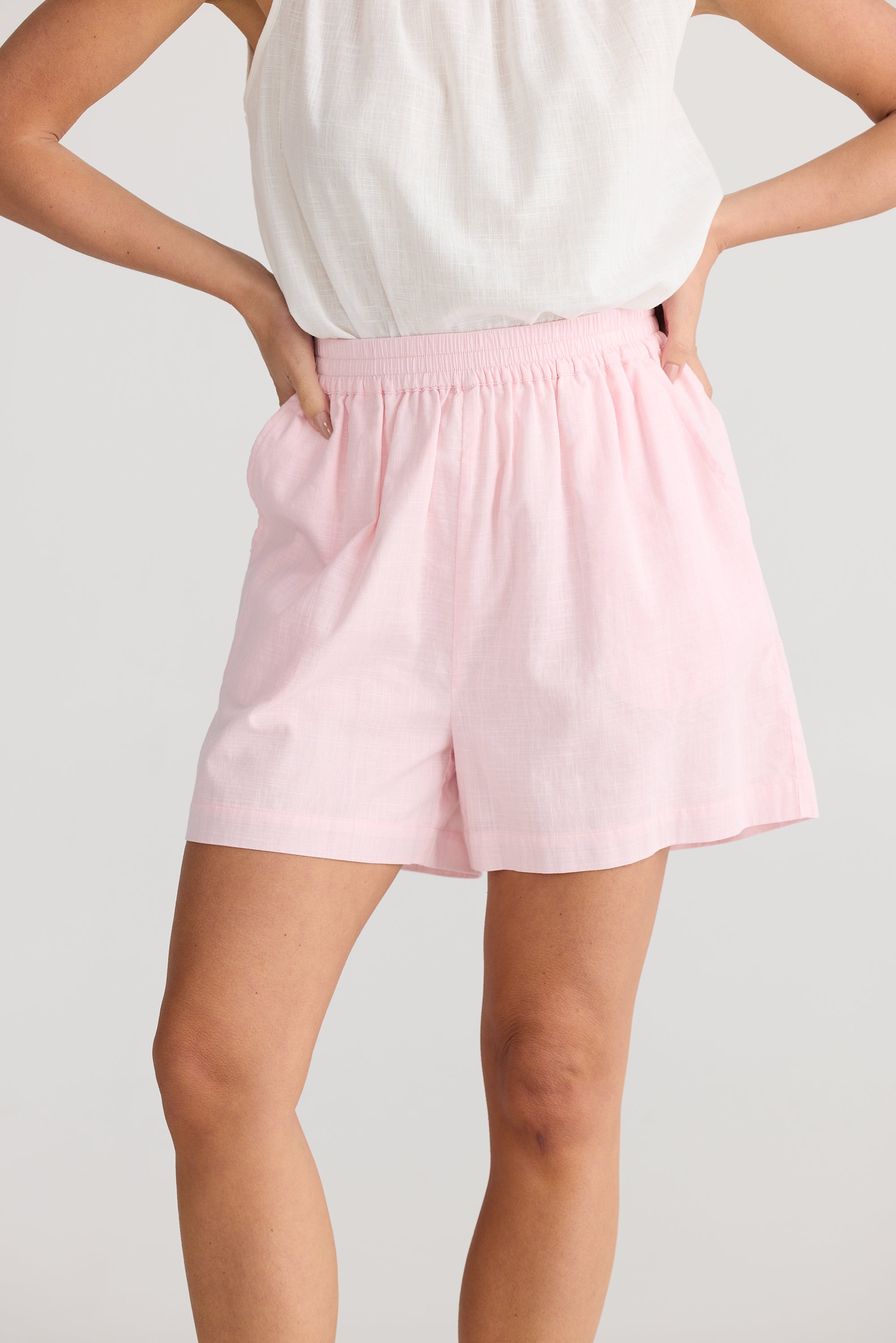 Stay stylishly comfortable with the Playa Short in a delightful pink hue. These versatile shorts feature an elasticated waistband for an easy, comfortable fit, with cutaway pockets for added convenience and style. Designed in a regular fit and fully lined, they provide a breathable and soft feel with 100% cotton fabric, making them ideal for warm days.