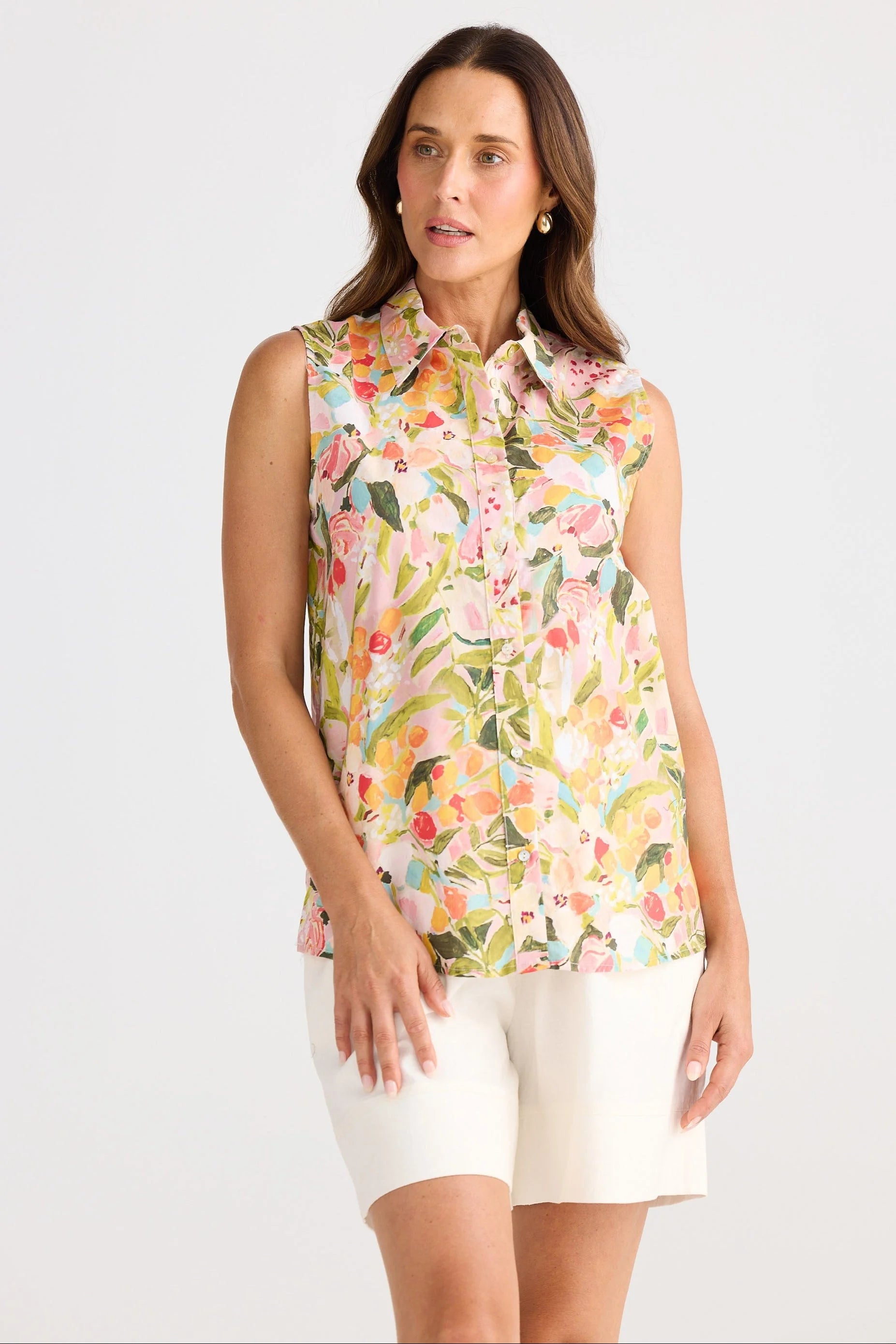 The Poppy Sleeveless Shirt from Brave + True combines comfort and style with its relaxed fit and versatile design. Featuring a classic collared neckline and a button-down front closure, this shirt offers timeless appeal suitable for various occasions. The sleeveless construction and side splits enhance breathability and ease of movement, making it a great choice for warm-weather wear. Designed for a laid-back yet polished look, it pairs effortlessly with jeans, shorts, or skirts. Add this wardrobe essential to your collection for a blend of functionality and effortless style.