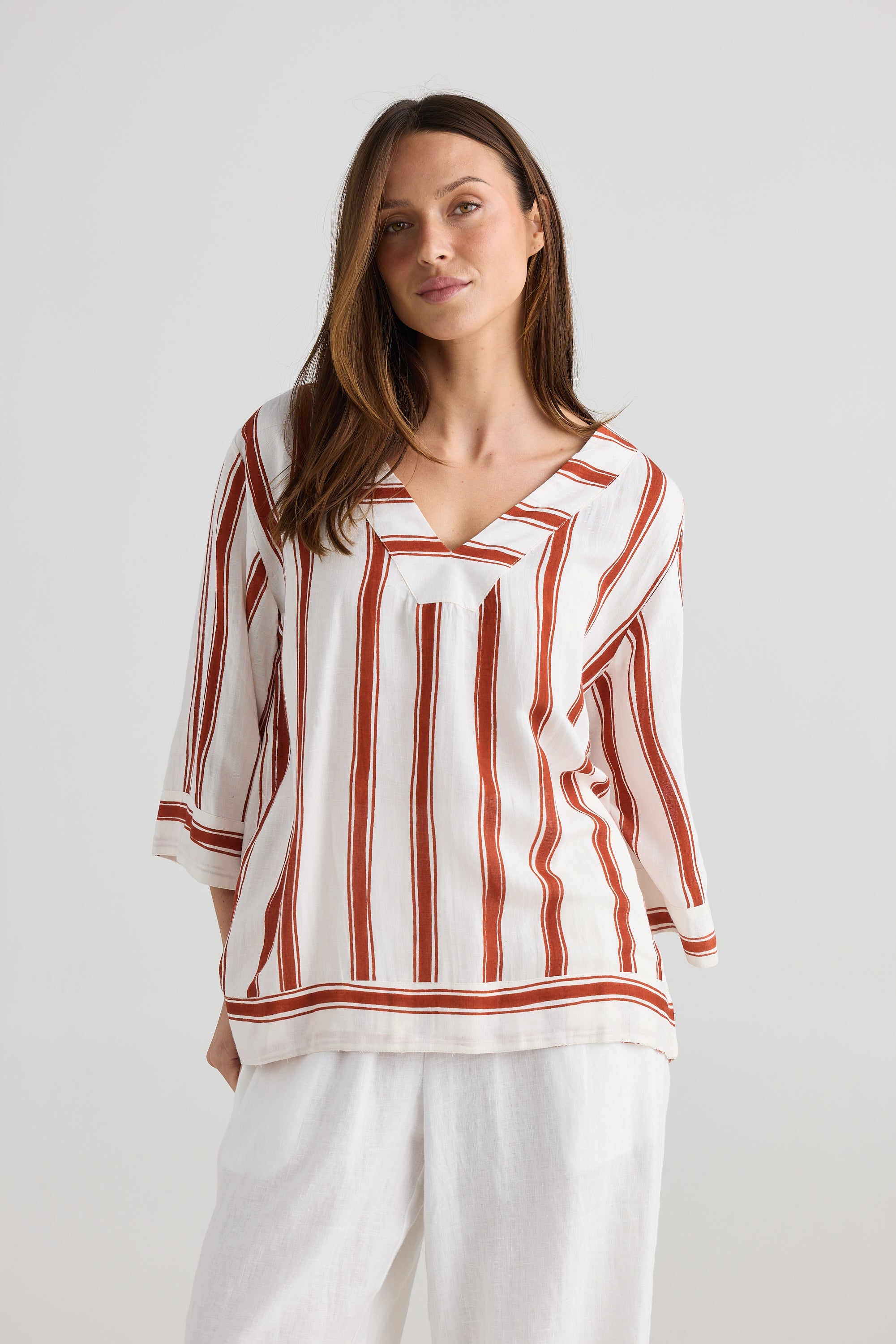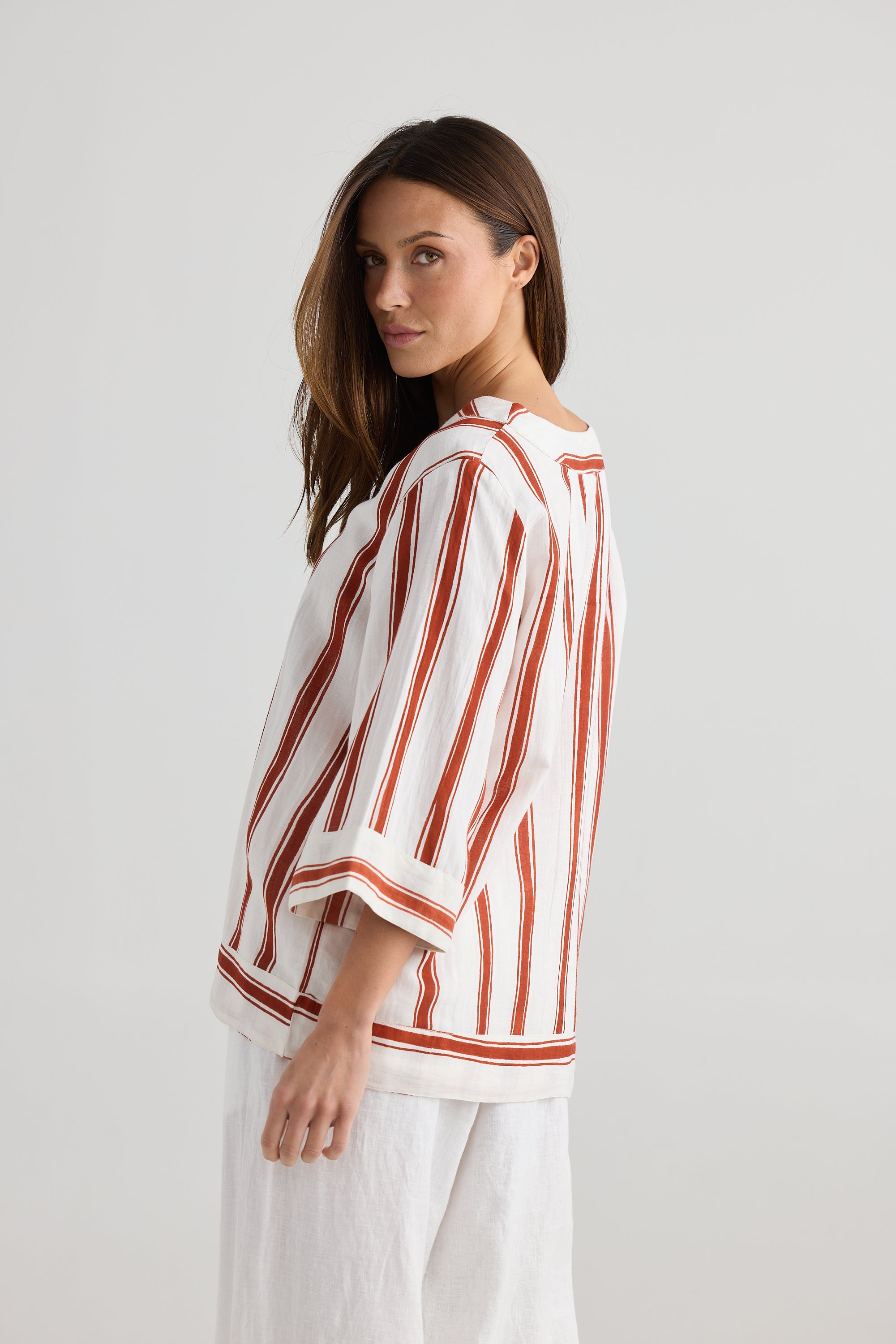 Ray Top – Drifter Stripe | Relaxed Linen Blend Blouse