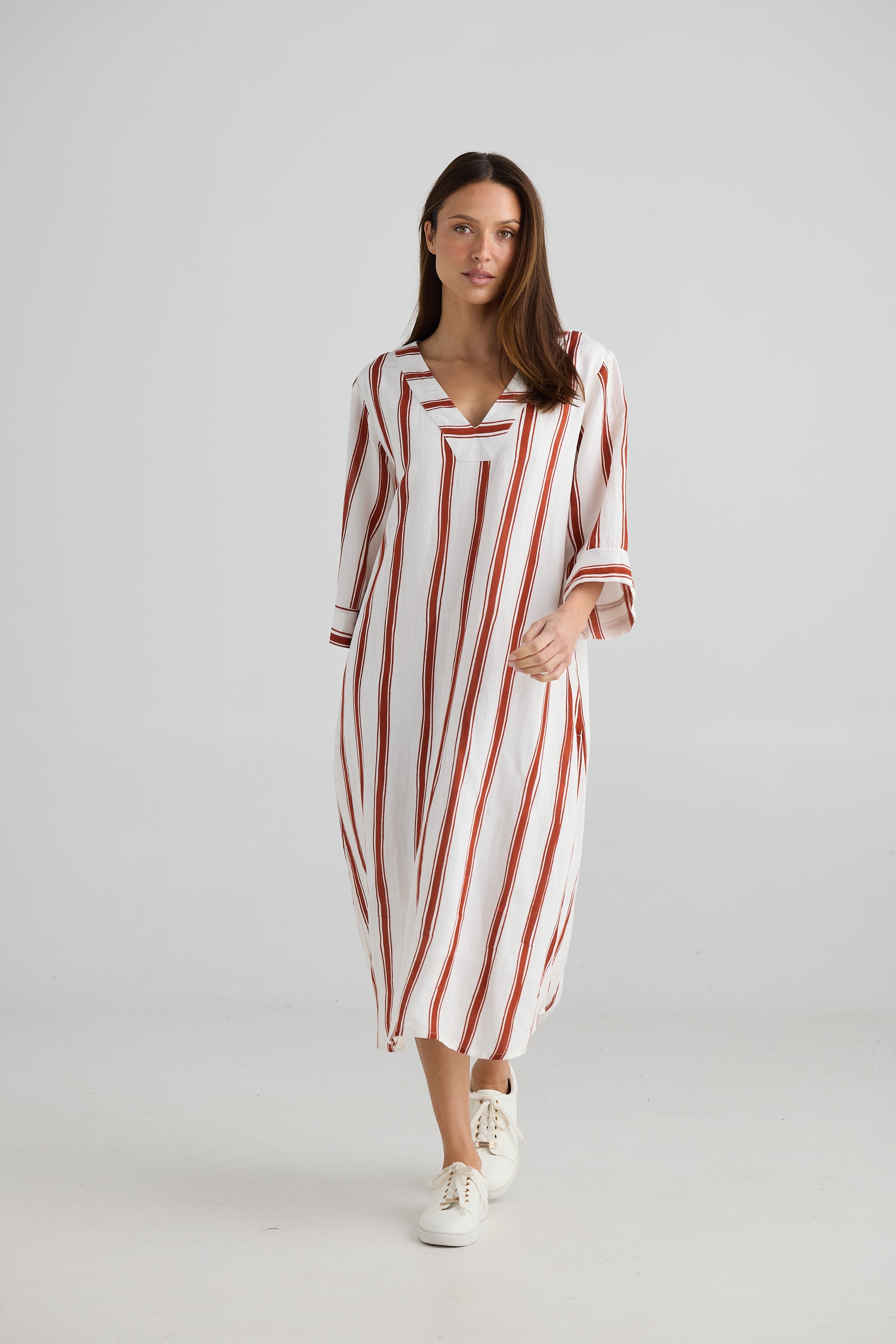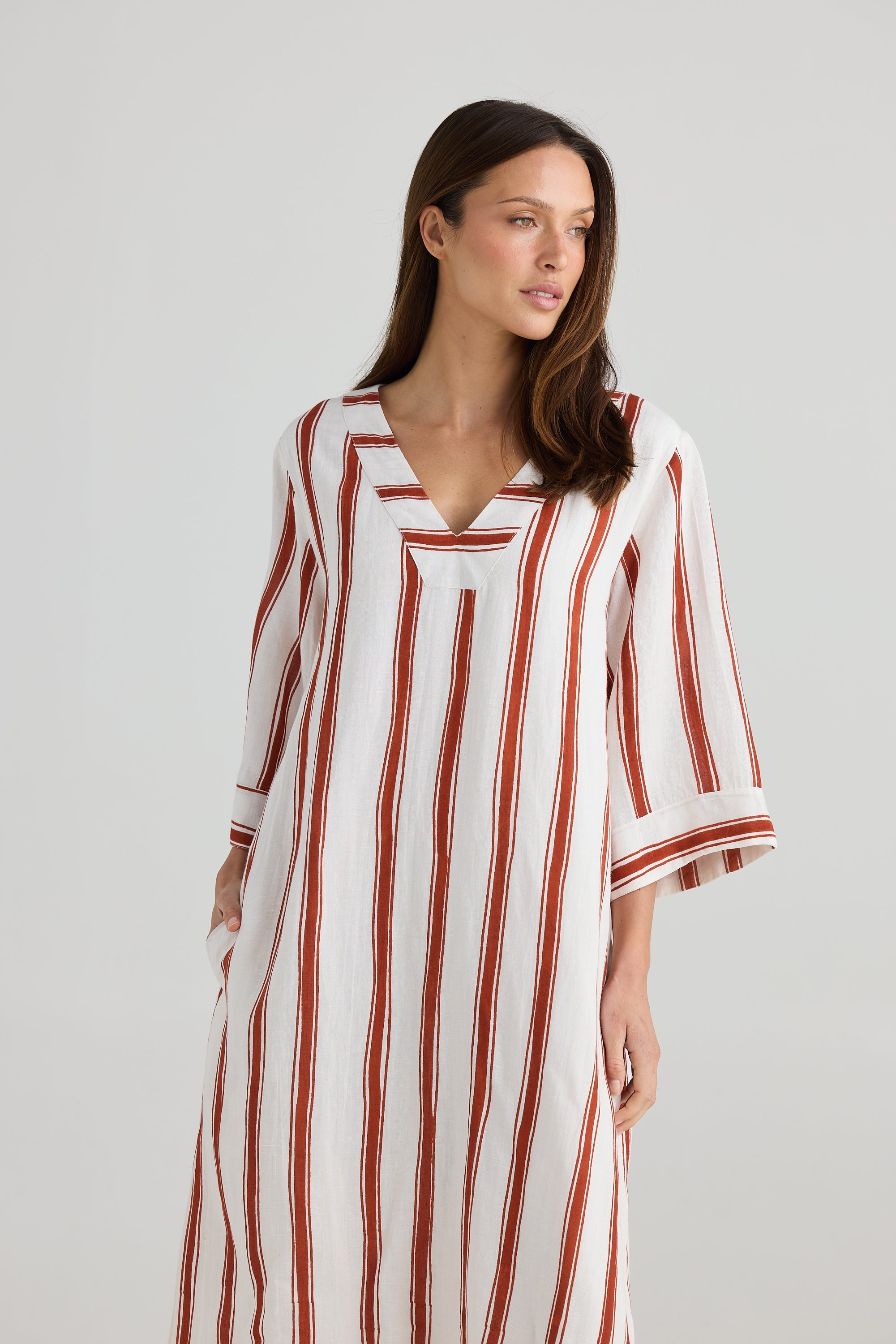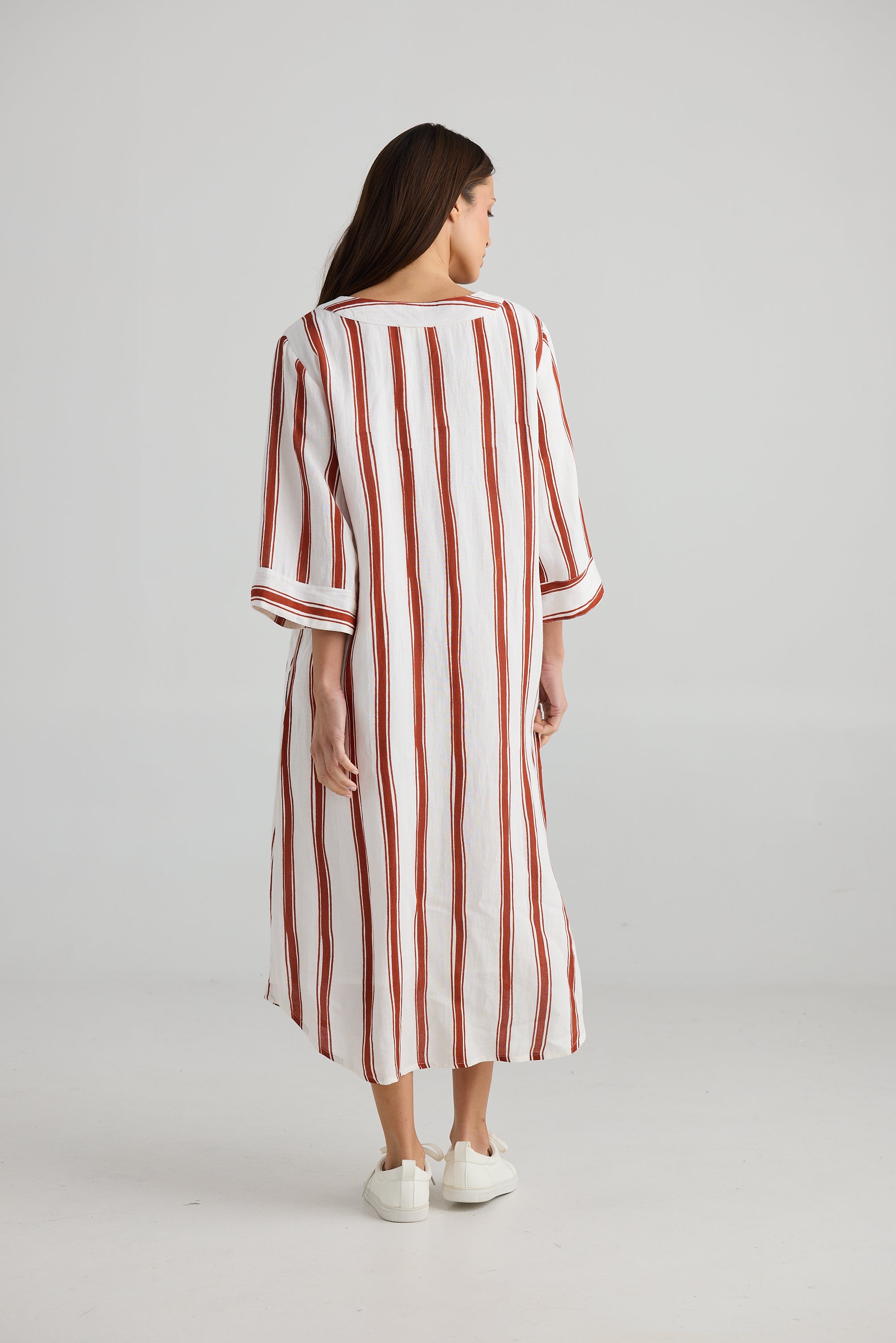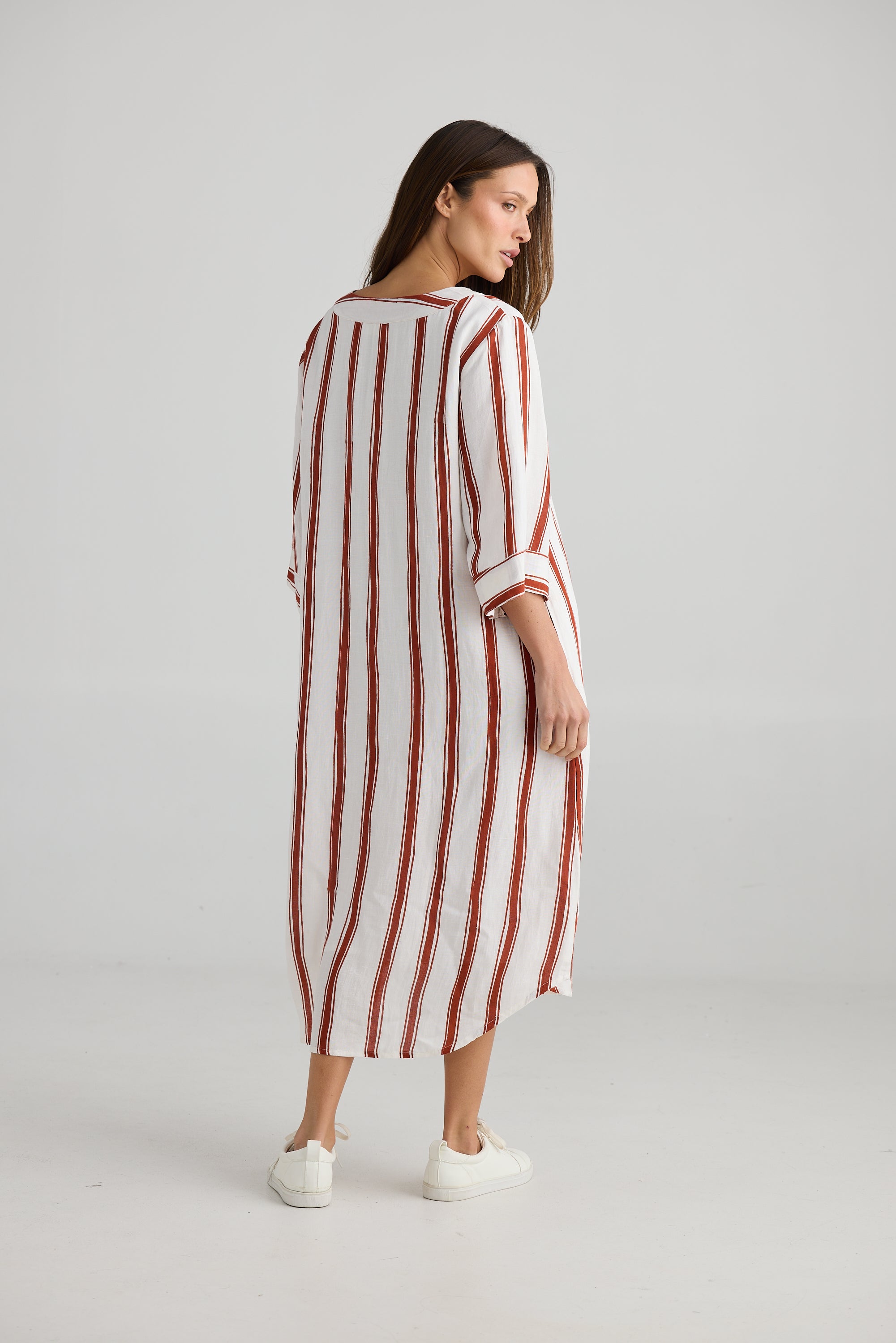 Ray Tunic – Drifter Stripe | Relaxed Linen Blend Midi Dress