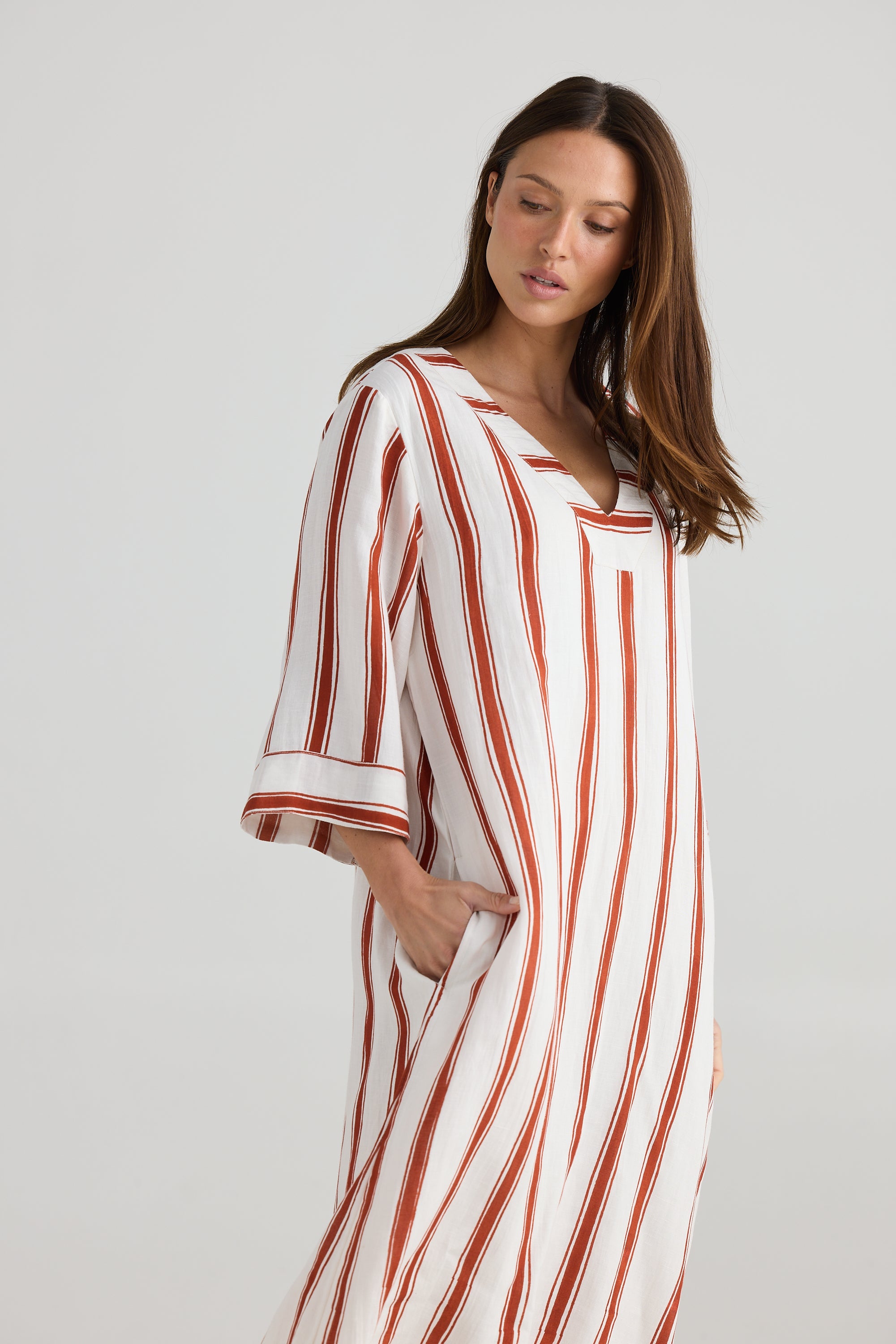 Designed for effortless sophistication, the Ray Tunic in Drifter Stripe is a relaxed-fit midi dress that blends comfort and timeless style. Made from a breathable viscose-linen blend, this tunic drapes beautifully while keeping you cool and comfortable.