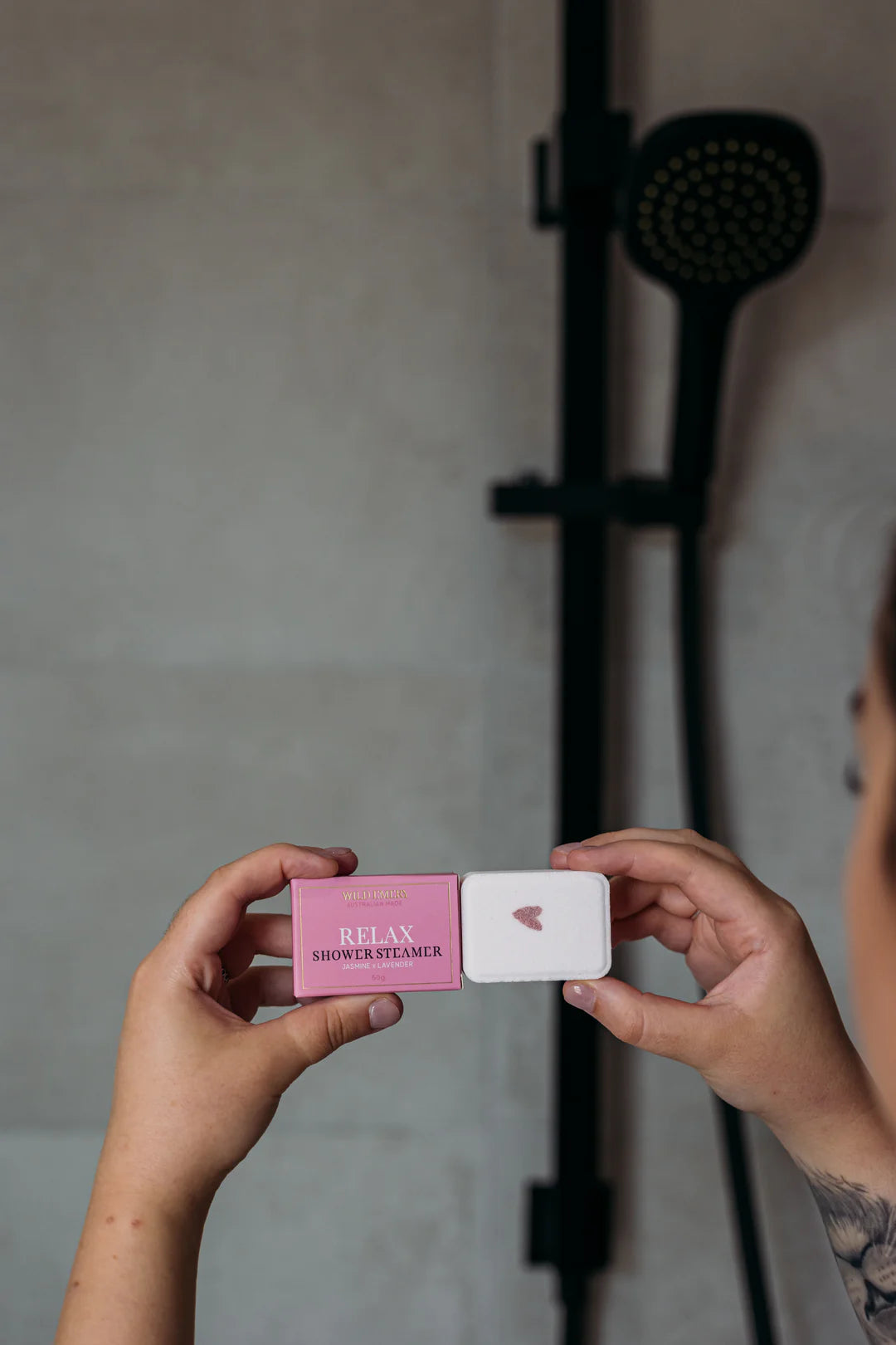 Our RELAX essential oil shower steamers are the ultimate floral shower experience. Fill the air with sweet notes of jasmine and lavender. This bouquet blend of flower essential oils is sure to please the mind and senses in a playful floral shower steamer. Bring some well-deserved indulgence into your everyday and treat yourself with a RELAX essential oil shower steamer.