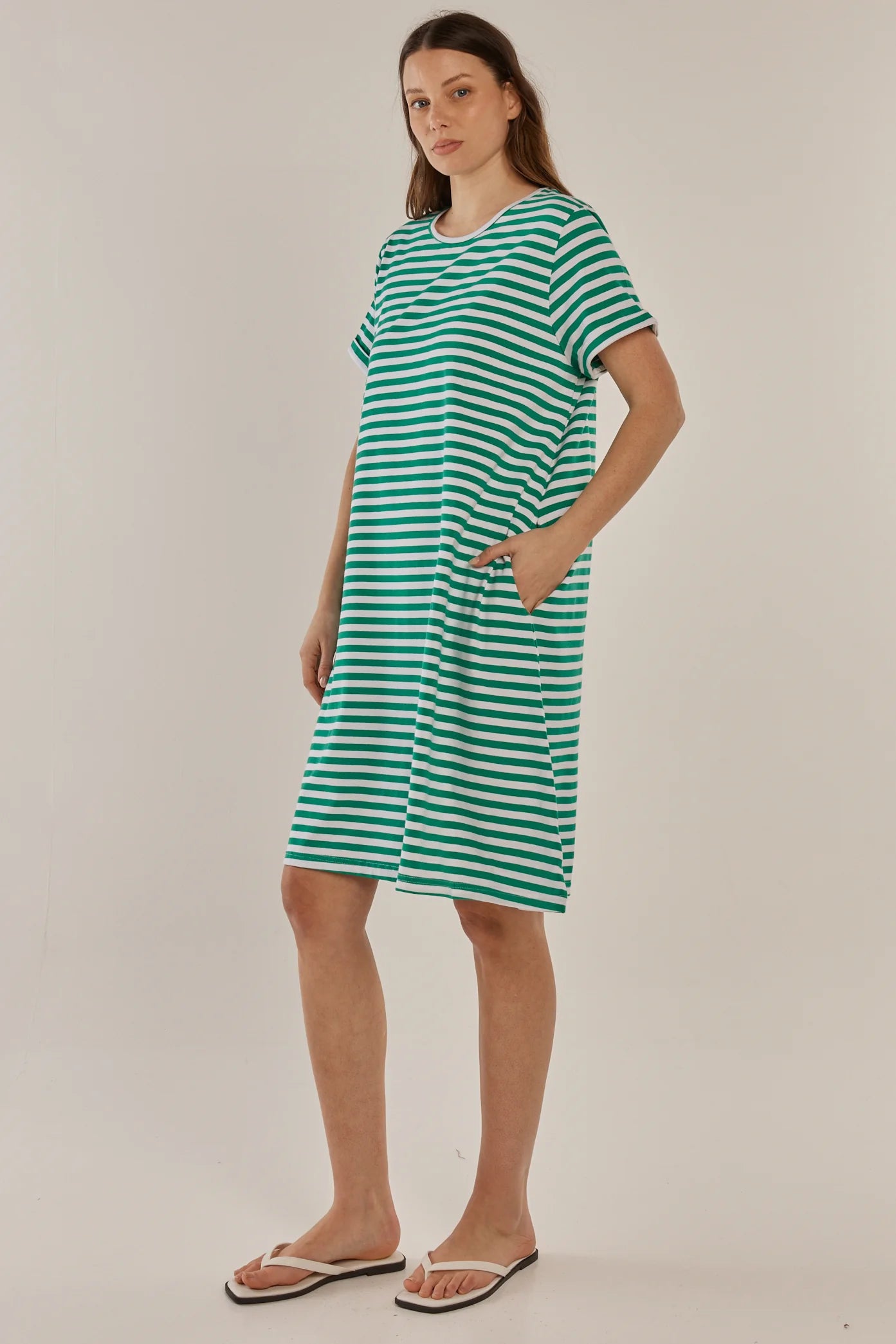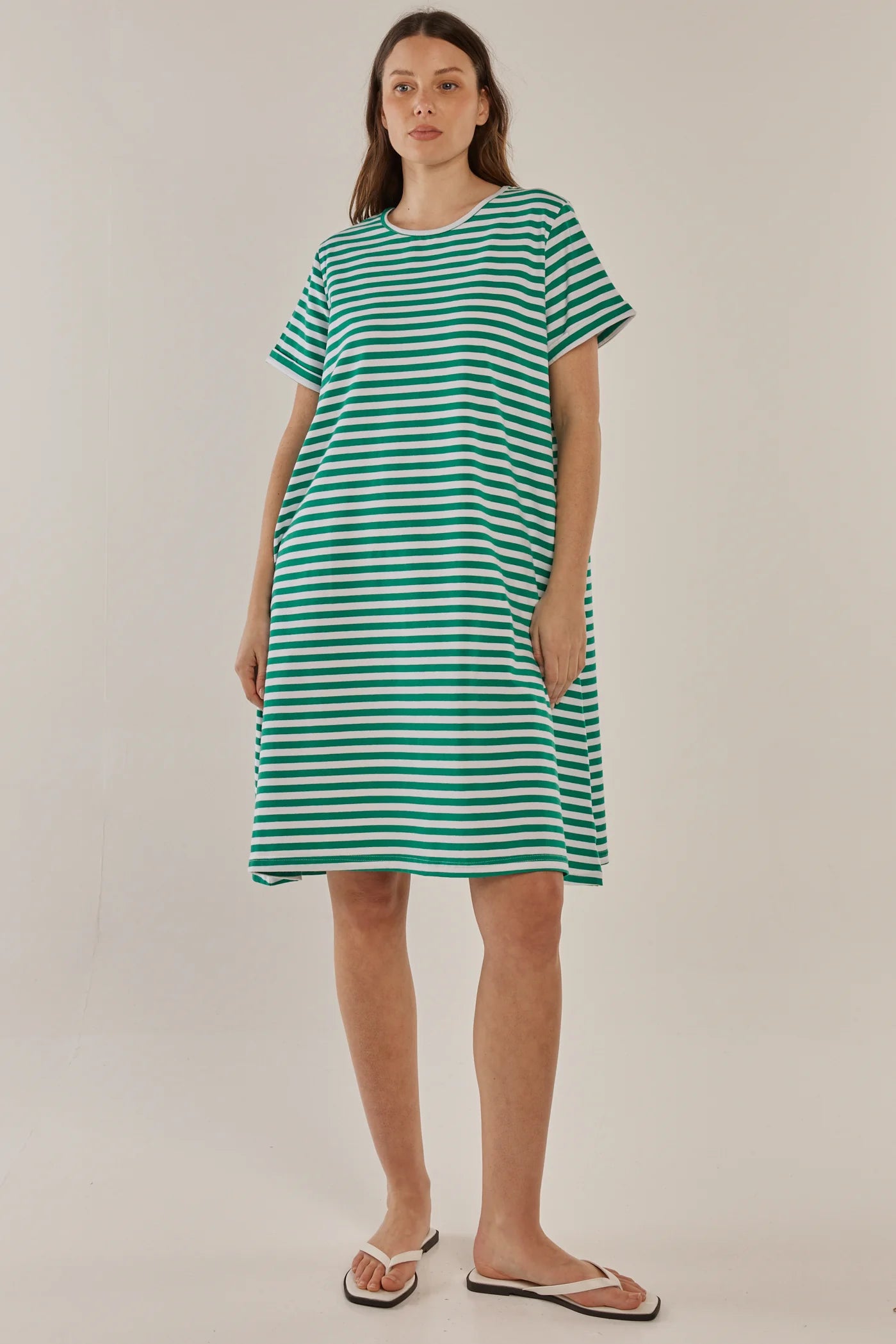 A sophisticated essential, the Rue Dress in cotton jersey blend features a scoop neckline and straight hemline in a relaxed fit. This classic piece delivers polished ease and transeasonal versatility, perfect for the woman seeking understated elegance.
