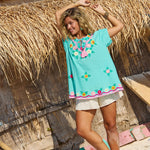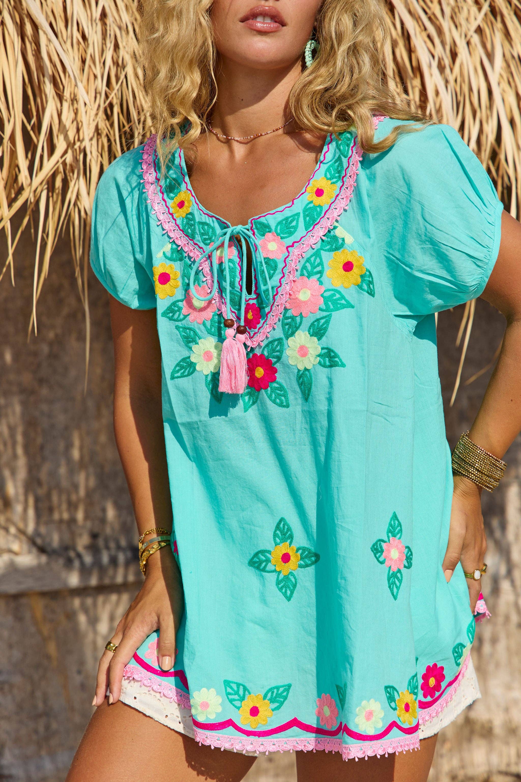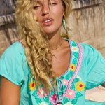 Sao Paulo Top Maui Aari Embroidery Aqua (Pre Order)