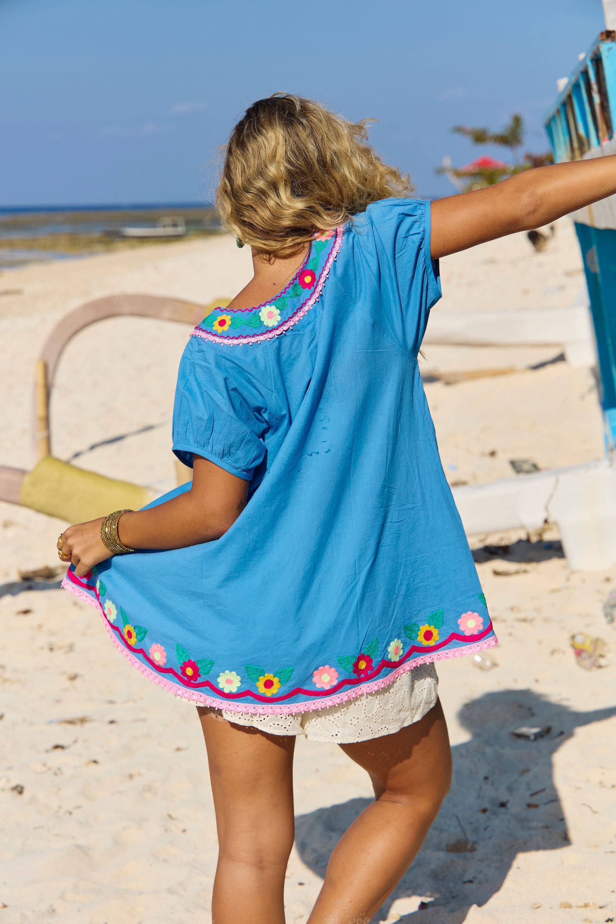 The Sao Paulo Top in Maui Aari Embroidery brings together vibrant colour, artisanal detail and the free-spirited ease Naudic is known for. Crafted from soft, breathable 100% cotton, this relaxed silhouette is designed for warm days, seaside adventures and effortless everyday wear. The lightweight feel floats beautifully over the body, offering comfort without compromising on style.