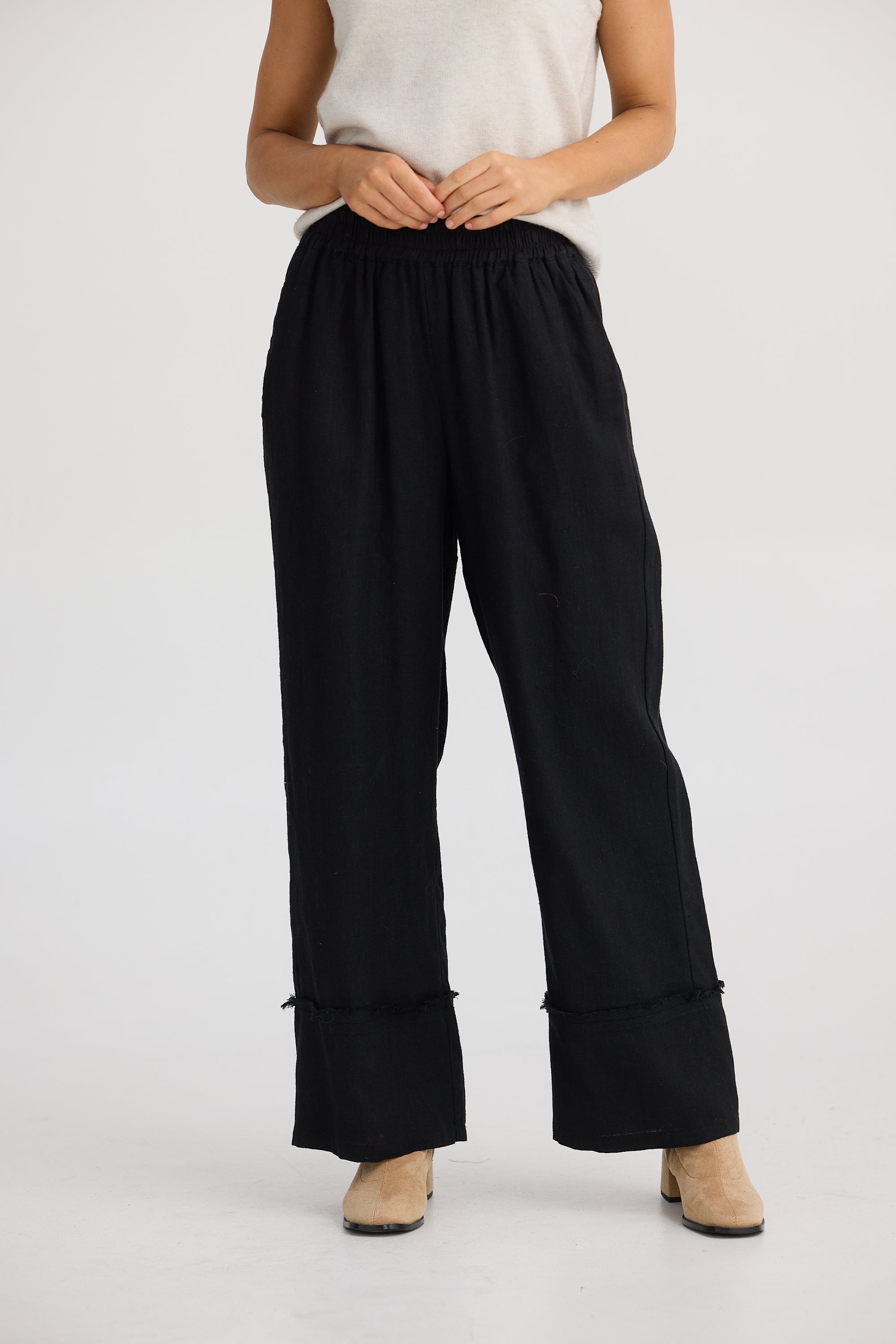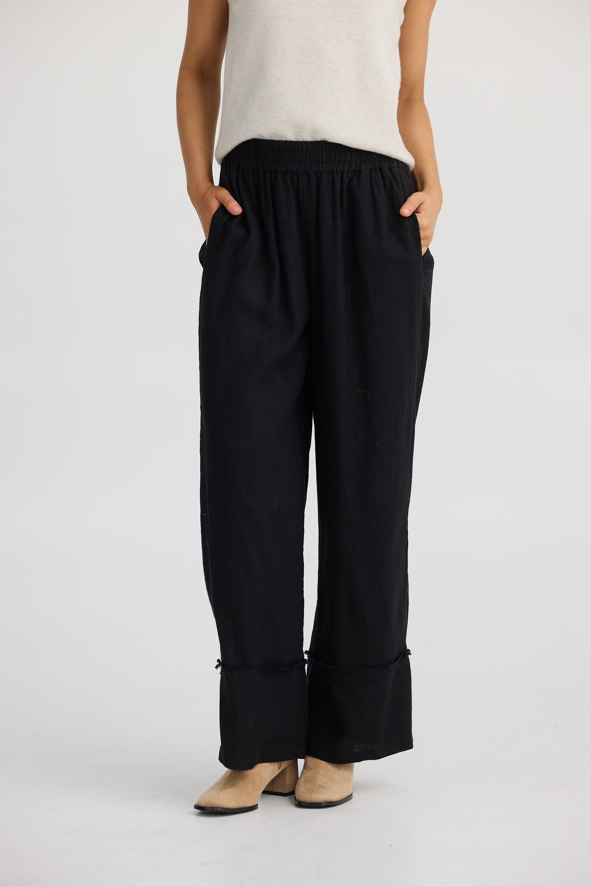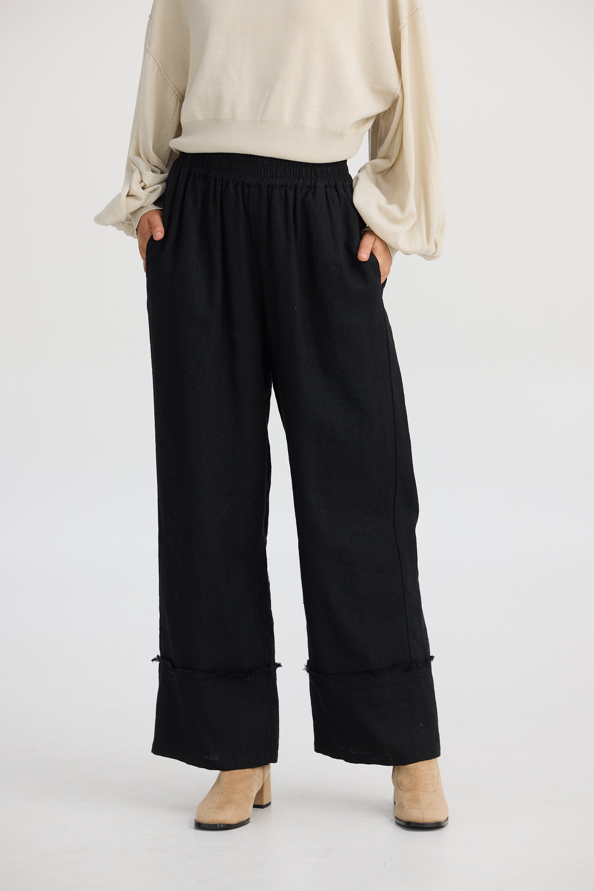 Meet your new go-to linen pant – the Sienna Pant in classic black. Designed for effortless style and all-day comfort, these versatile pants feature a relaxed straight-leg fit, elasticated waistband, and modern extra-wide cuff detail for an elevated finish.