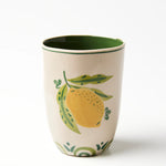 A single golden lemon, rendered with careful brushstrokes, adorns this hand-painted cup where form follows feeling. The verdant interior creates a moment of discovery with each sip, while its generous proportions make it equally suited to morning coffee o