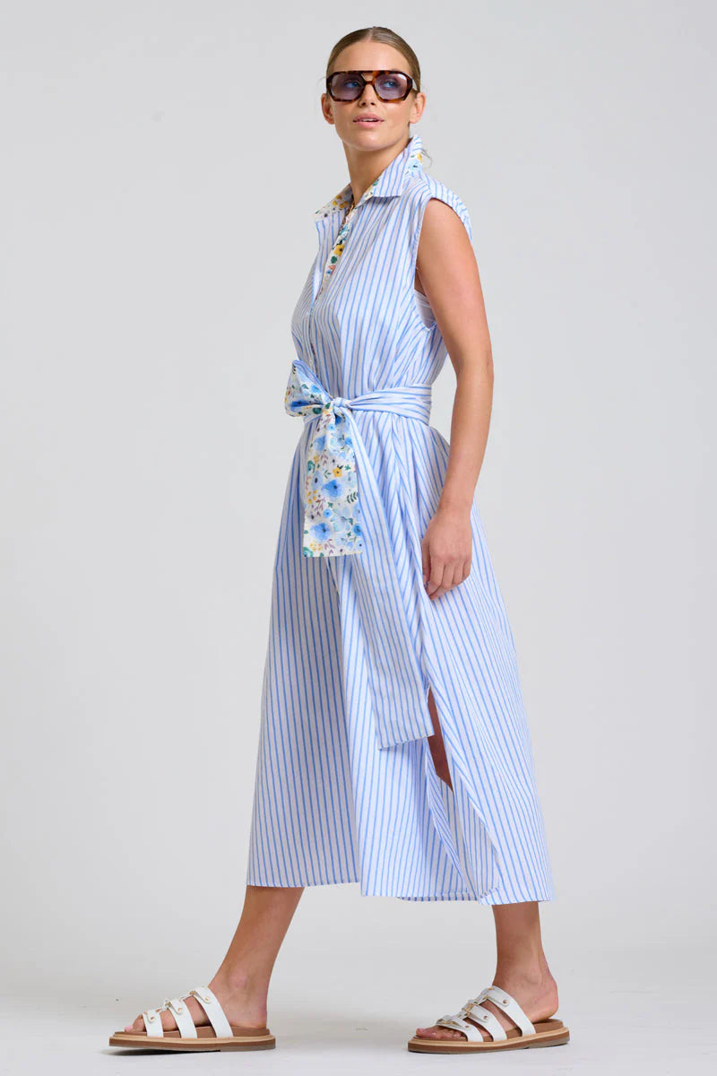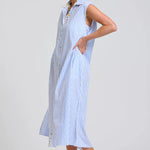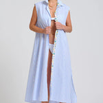 The Sleeveless version of our bestselling Luna. A longline, lightweight shirtdress silhouette. She’s a generous cut, featuring pockets stunning side vents and a bold belt too. Wear Sloane to the beach bar & beyond.